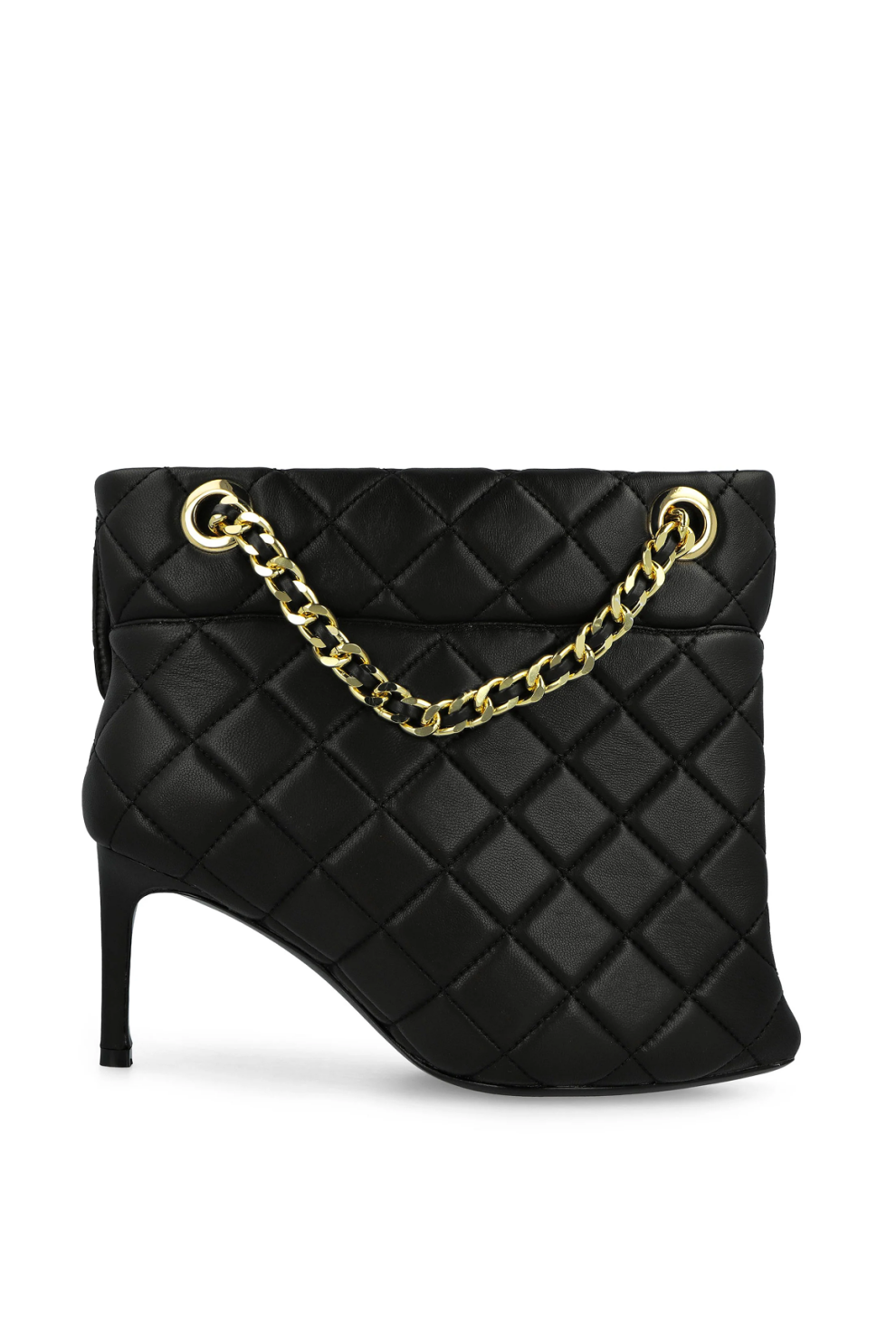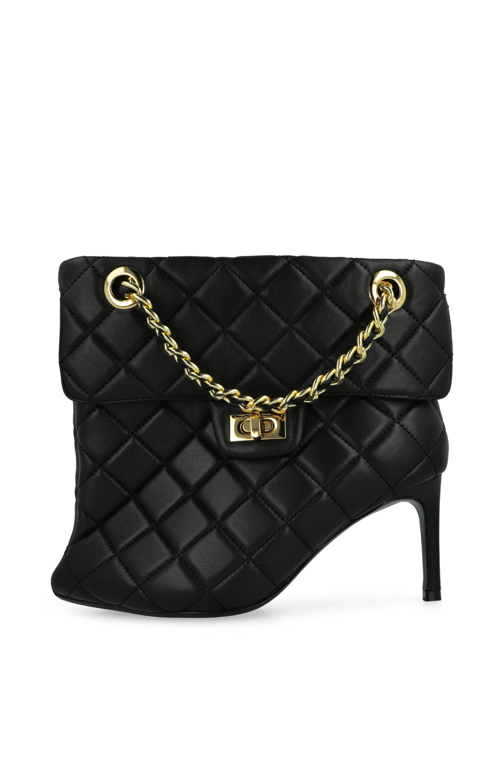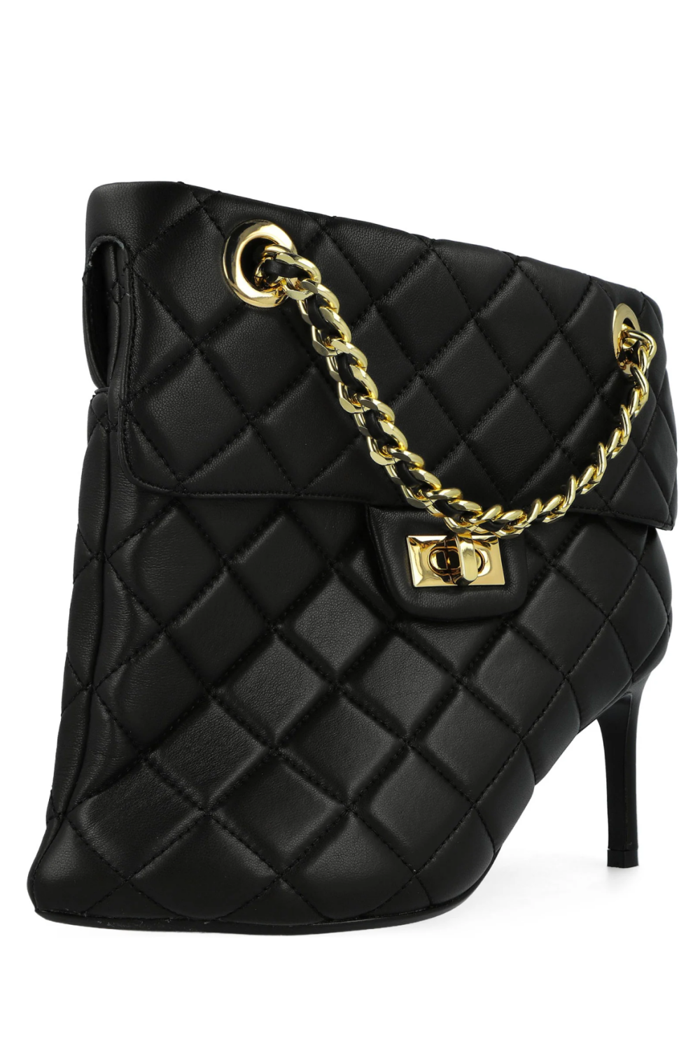 Фирменный каблук-булавка с тонкой графичной линией визуально удлиняет силуэт и создаёт эффект лёгкой провокации, в то время как декоративная деталь, вдохновлённая стёганой сумкой, становится ключевым акцентом модели — неожиданным и абсолютно узнаваемым. Скульптурная конструкция верха подчёркивает архитектурность формы, сохраняя при этом баланс между авангардом и носибельностью.