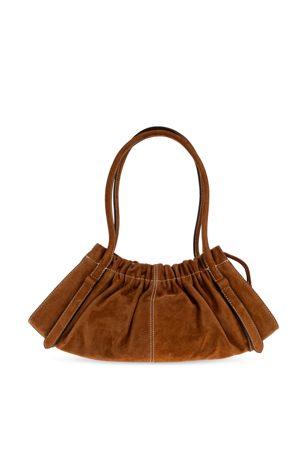 Сумка через плечо «Cristina» — это воплощение непревзойденной элегантности и женственности. Широкая, слегка полукруглая форма с едва заметными оборками, выполненная из мягкой коричневой замши , подчеркивает вневременной характер этой эксклюзивной модели от Marc Jacobs. Длинные ручки обеспечивают удобное ношение на плече, а дизайн дополняет легкая контрастная строчка по бокам и сверху.