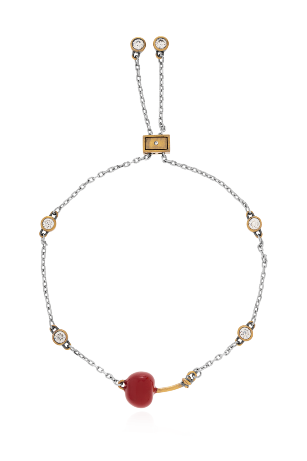 Браслет The Cherry Slider с подвесками от Marc Jacobs — это утонченная интерпретация современной элегантности. Изящная серебряная цепочка, украшенная тонкими золотыми деталями, гармонично дополняет расположенный в центре блестящий шарм в форме вишни в сочетании с изящными хрустальными элементами, закрепленными на регулируемой цепочке-слайдере для идеальной посадки.