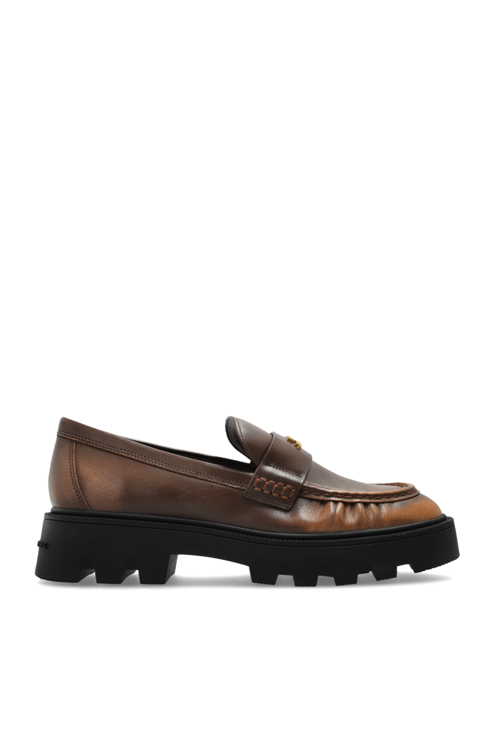 Лоферы Frankie — это изысканный пример современной элегантности в интерпретации Марка Джейкобса, дизайнера, известного своим мастерским сочетанием традиций и авангарда. Мерцающая коричневая кожа с едва заметным состаренным градиентом завораживает глубиной цвета, а классический закругленный носок гармонично дополняет выразительную рифленую подошву. Их солидный характер подчеркивает золотистый металлический логотип, слегка мерцающий на ремешке, что акцентирует внимание на эксклюзивности изделия.