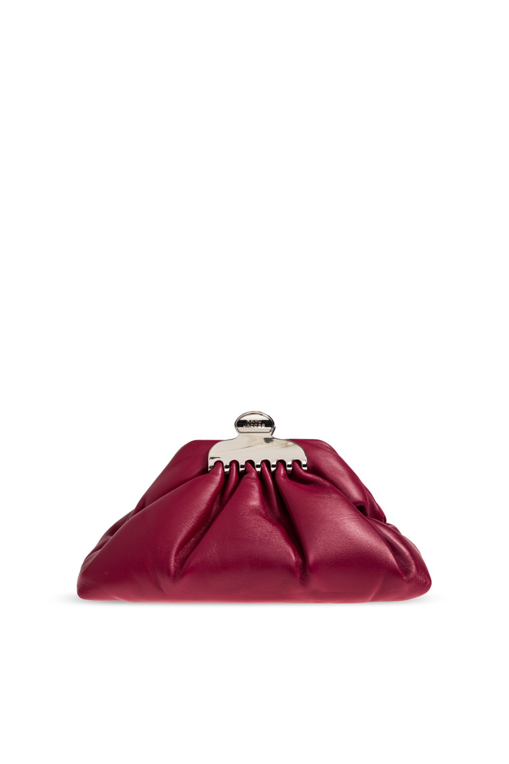 Небольшая сумка-клатч The Glam Small от Marc Jacobs — эксклюзивный аксессуар для ценителей утонченной элегантности. Его слегка трапециевидная форма и мягко собранная верхняя часть придают аксессуару уникальный современный характер. Высококачественная гладкая натуральная кожа глубокого бордового цвета излучает вневременную элегантность, привлекая внимание своей изысканной структурой и естественными складками.