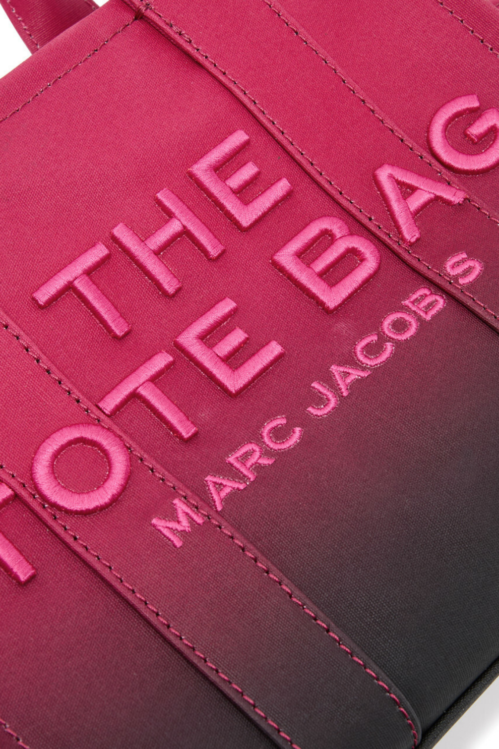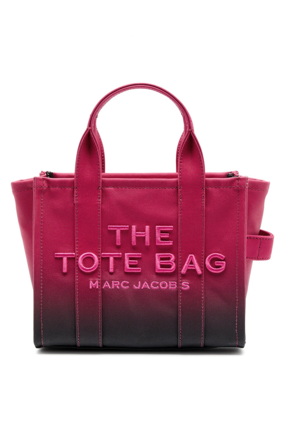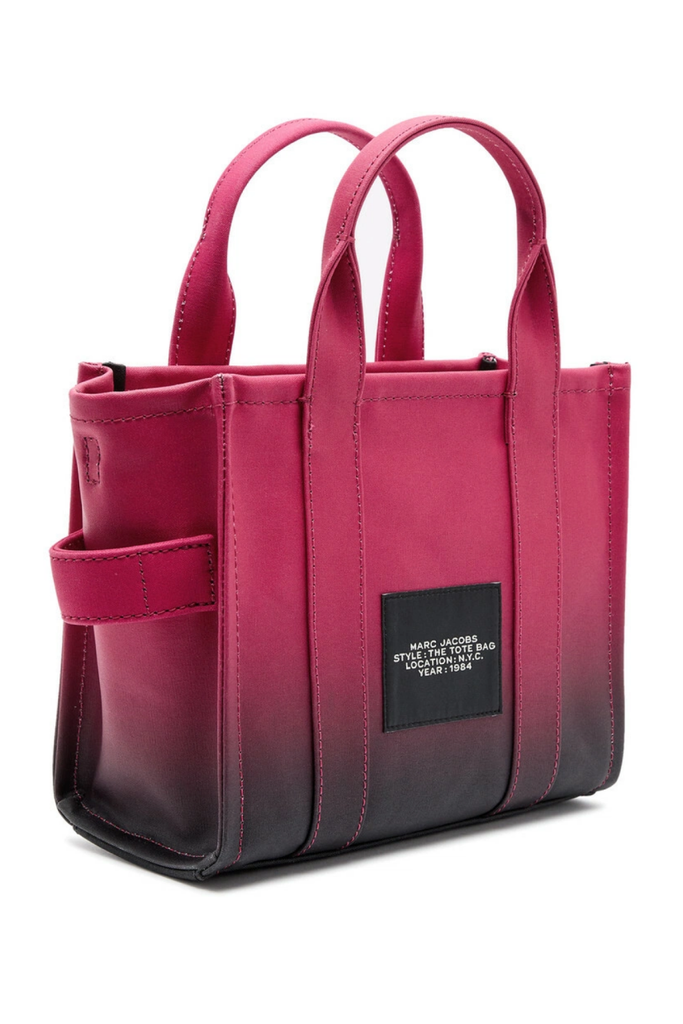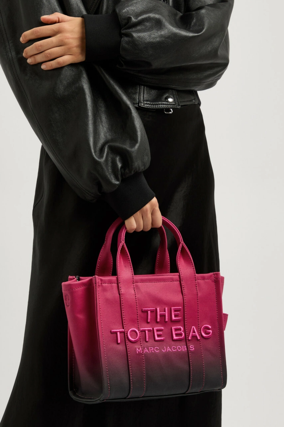 Компактная и выразительная сумка The Tote Small от Marc Jacobs сочетает функциональность и современный дизайн. Модель выполнена из прочного покрытого канваса с эффектным деграде-градиентом, создающим динамичный и стильный визуальный эффект.