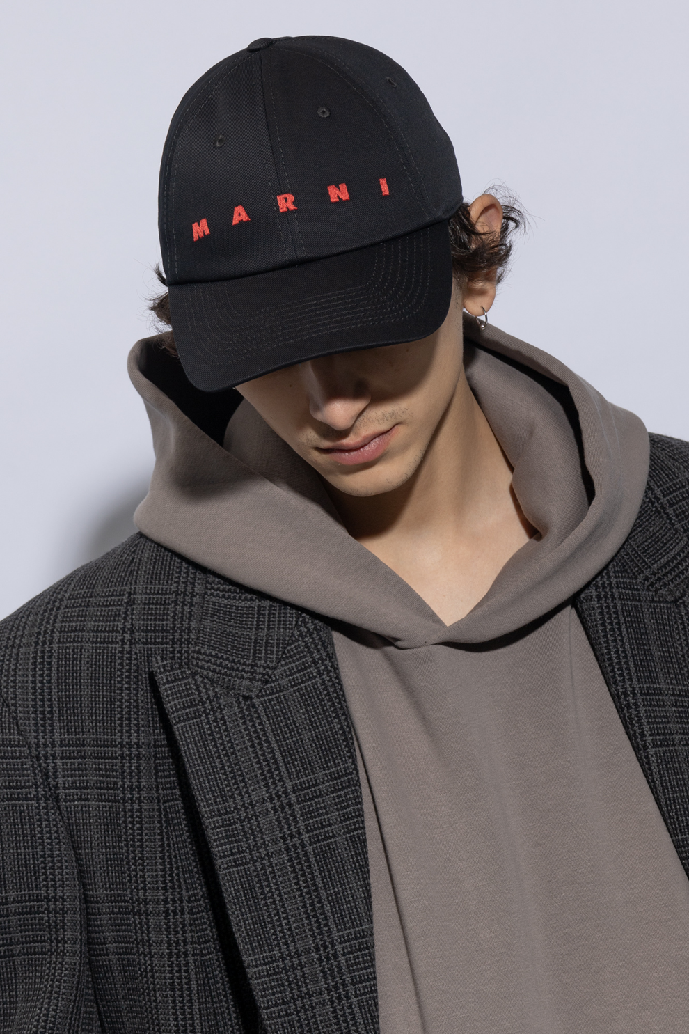 Яркий вышитый логотип MARNI красного цвета расположен по центру, придавая кепке уникальный характер и подчёркивая её эксклюзивный характер. Это изысканный штрих, отражающий самобытность этого итальянского бренда, чьи модели отличаются эклектичным стилем и вниманием к деталям.