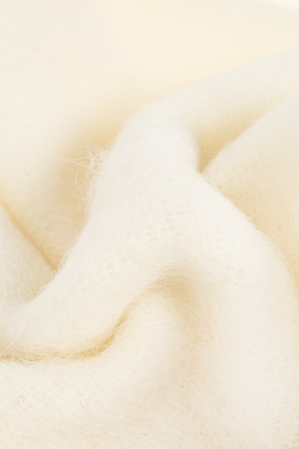 Однотонный шарф изготовлен из из высококачественной пушистой шерсти с исключительно мягкой, слегка «ворсистой» текстурой, он излучает несравненную легкость и изысканность натуральных волокон. Его классическая прямоугольная форма и увеличенный размер обеспечивают комфортное наматывание и уникальный образ как для повседневных, так и для изысканных образов.