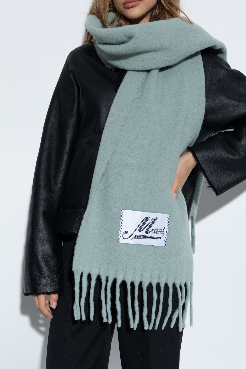 Зеленый шерстяной шарф Marni с бахромой — идеальный выбор для ценителей изысканного стиля и вневременной элегантности. Классическая прямоугольная форма подчёркивается выразительной длинной бахромой, которая добавляет объёма и сдержанную роскошь.