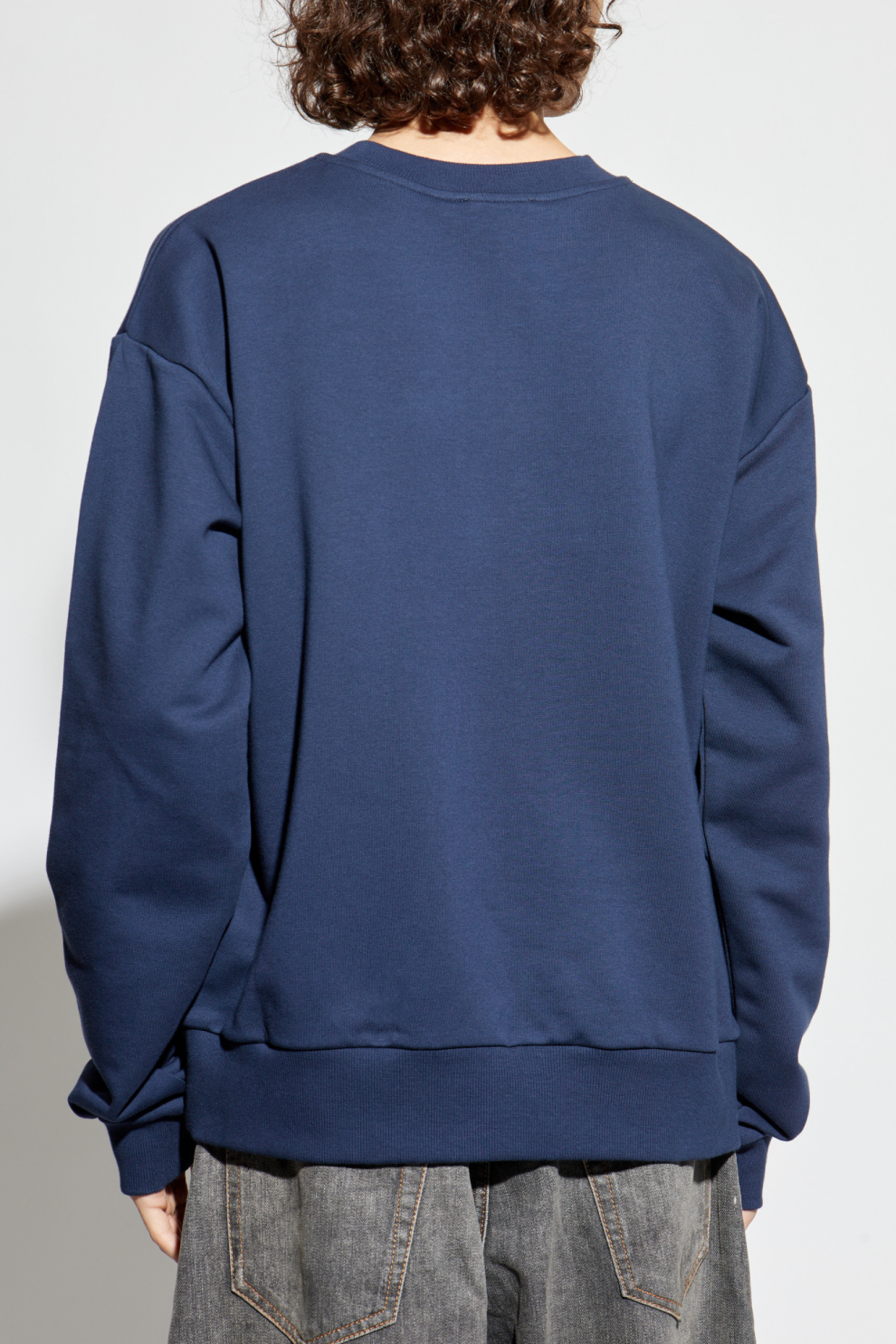 Изготовленная из мягкого хлопкового трикотажа средней плотности, она нежно облегает тело, даря ощущение комфорта и удовольствия от ношения в любой ситуации. Глубокий, насыщенный тёмно-синий цвет подчёркивает вневременную элегантность модели, а эффектная нашивка с логотипом «MARNI» — красные и белые буквы на контрастном фоне, обрамлённые неровной красной строчкой — превращает толстовку в арт-объект. Эта тщательно выполненная деталь придаёт изделию уникальный характер, словно вышитый вручную, и отражает художественный замысел бренда.