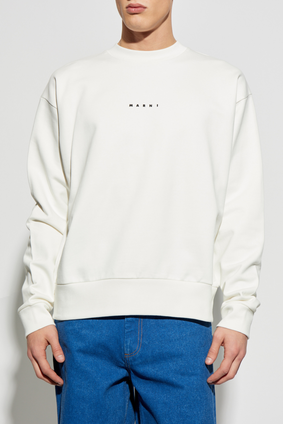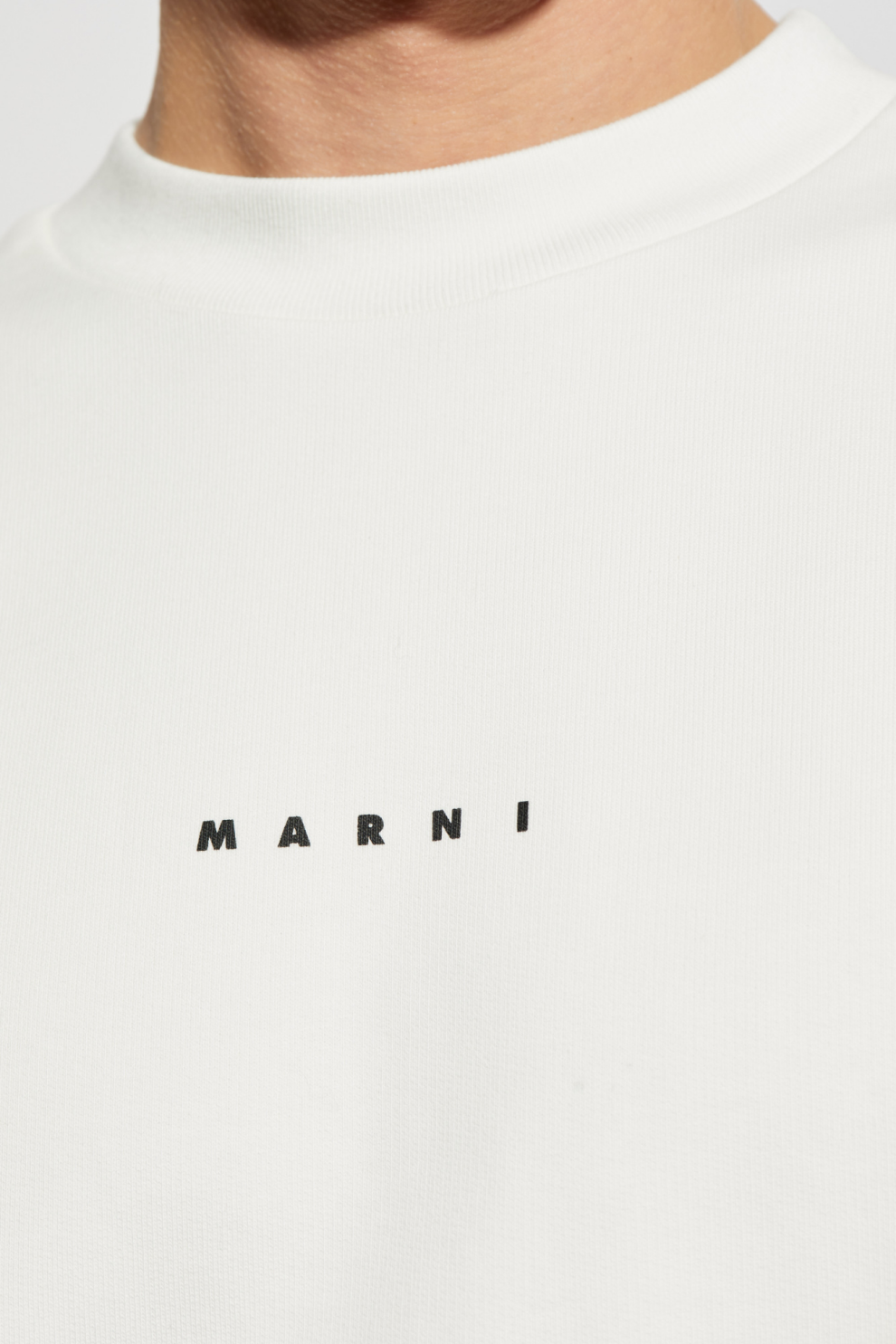 Белая толстовка с логотипом MARNI – квинтэссенция современной элегантности и минималистичного стиля. Эта толстовка с круглым вырезом, изготовленная из высококачественного хлопка, обеспечивает комфорт и изысканный вид. Прямой крой, длинные рукава, а также ребристые манжеты и низ придают модели изящную структуру.