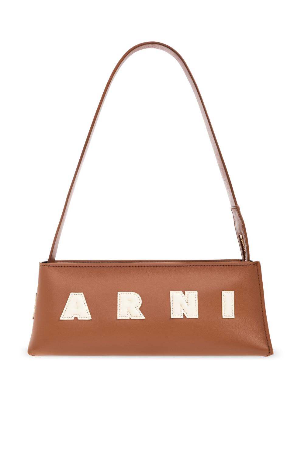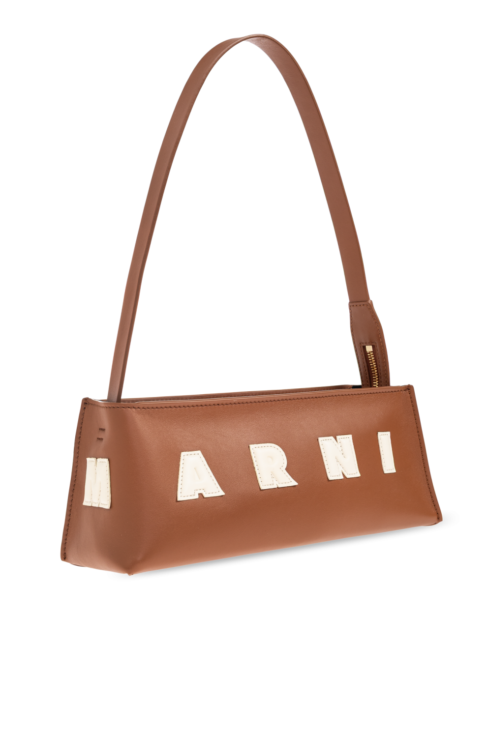 Главным акцентом становится аппликация с бежевым логотипом «MARNI», где каждая буква пришита вручную, подчёркивая характерную для бренда эстетику ремесленной точности и художественной свободы. Контрастная строчка превращает лаконичный дизайн в утончённое высказывание — сдержанное, но выразительное.