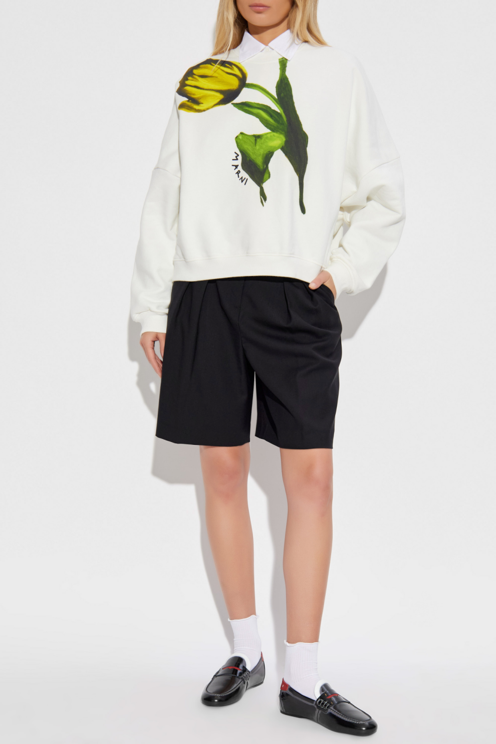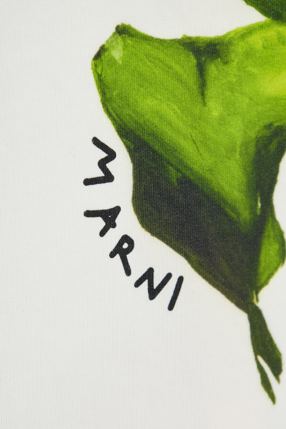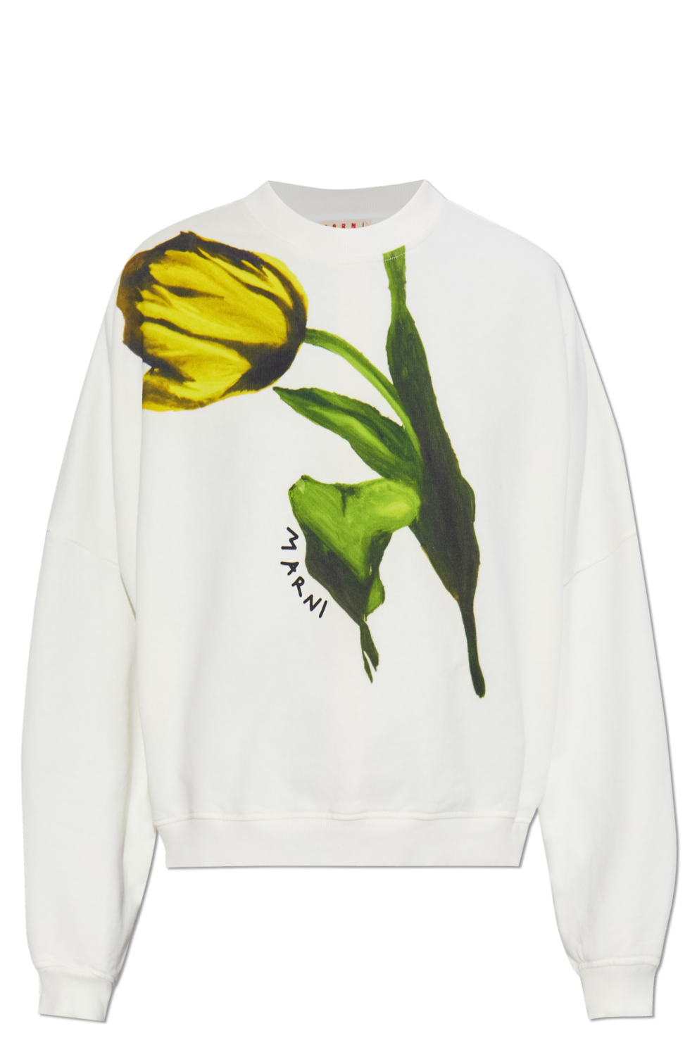 Эта толстовка с принтом Marni — шедевр современной элегантности, искусно сочетающий минималистичный дизайн с художественной выразительностью. Кремовый оттенок ткани в сочетании с крупным асимметричным принтом жёлтого тюльпана на зелёном стебле придаёт этой толстовке неповторимый весенний вид.