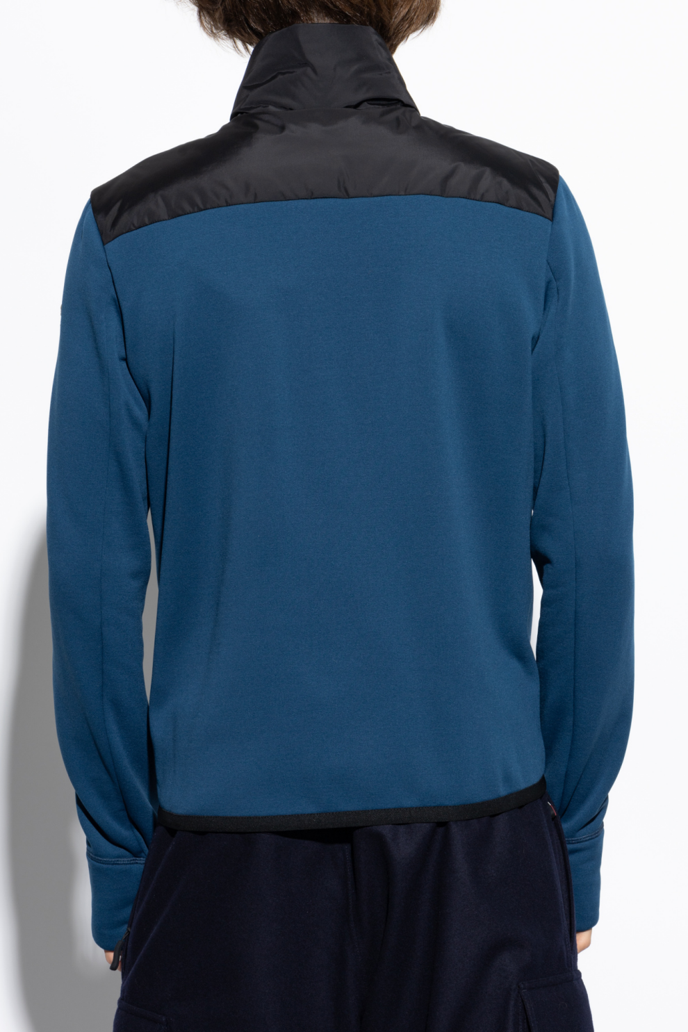 Мужская куртка Padded Polartec Zip-Up из коллекции Moncler Grenoble Performance & Style — идеальный выбор для любителей активного отдыха, особенно в сложных зимних условиях. Эта модель воплощение элегантности и функциональности. Выполненная в доминирующем синем цвете, дополненном черными акцентами на плечах и воротнике, она изготовлена из стеганой ткани и обеспечивает непревзойденное тепло и комфорт.