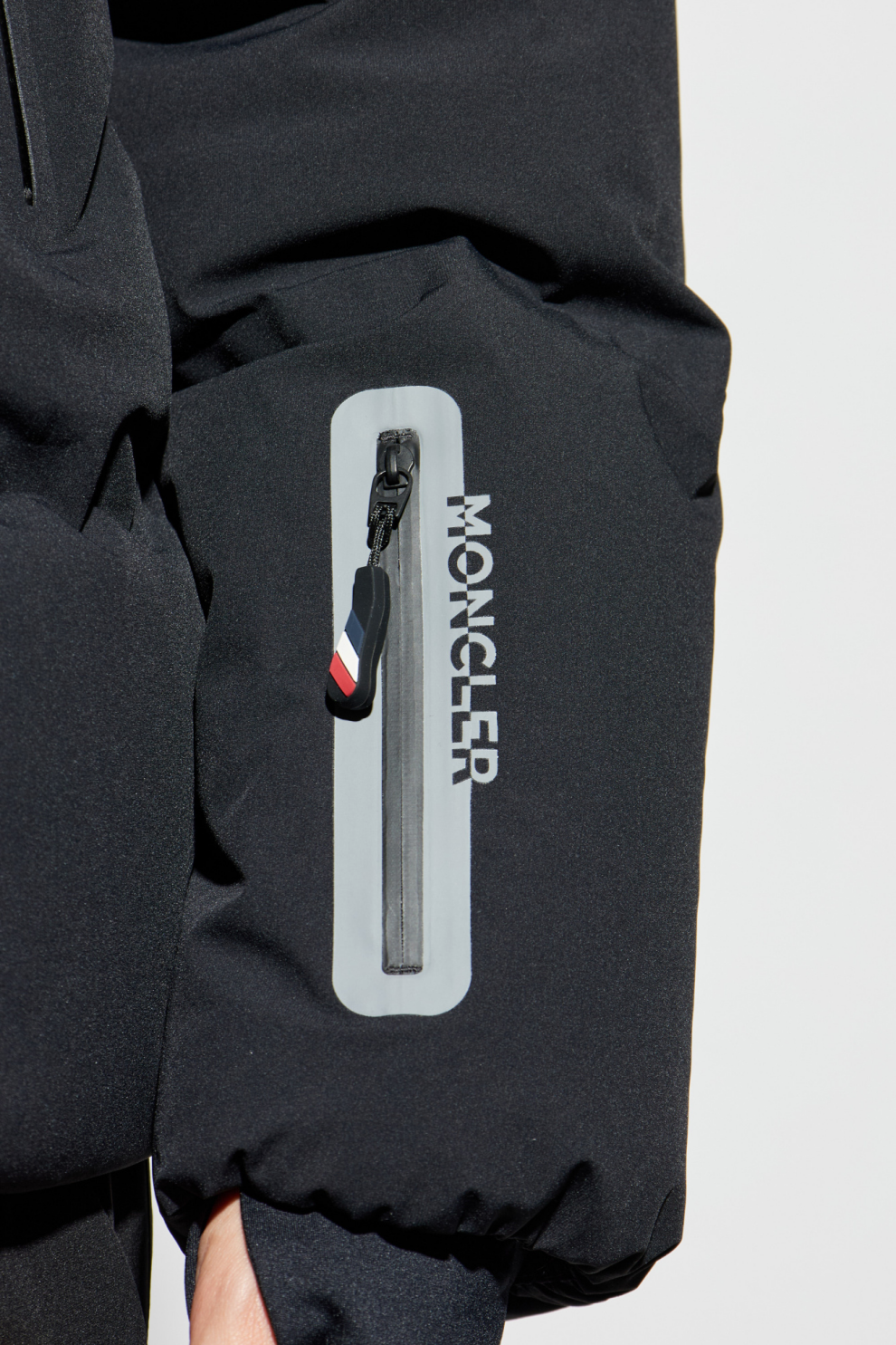 Уникальной деталью является вертикальная надпись MONCLER на рукаве, подчеркнутая светло-серым акцентом, водонепроницаемая молния и декоративный язычок, вдохновлённый трёхцветной палитрой бренда. Этот элемент дизайна придаёт изделию сдержанный, но в то же время узнаваемый вид.