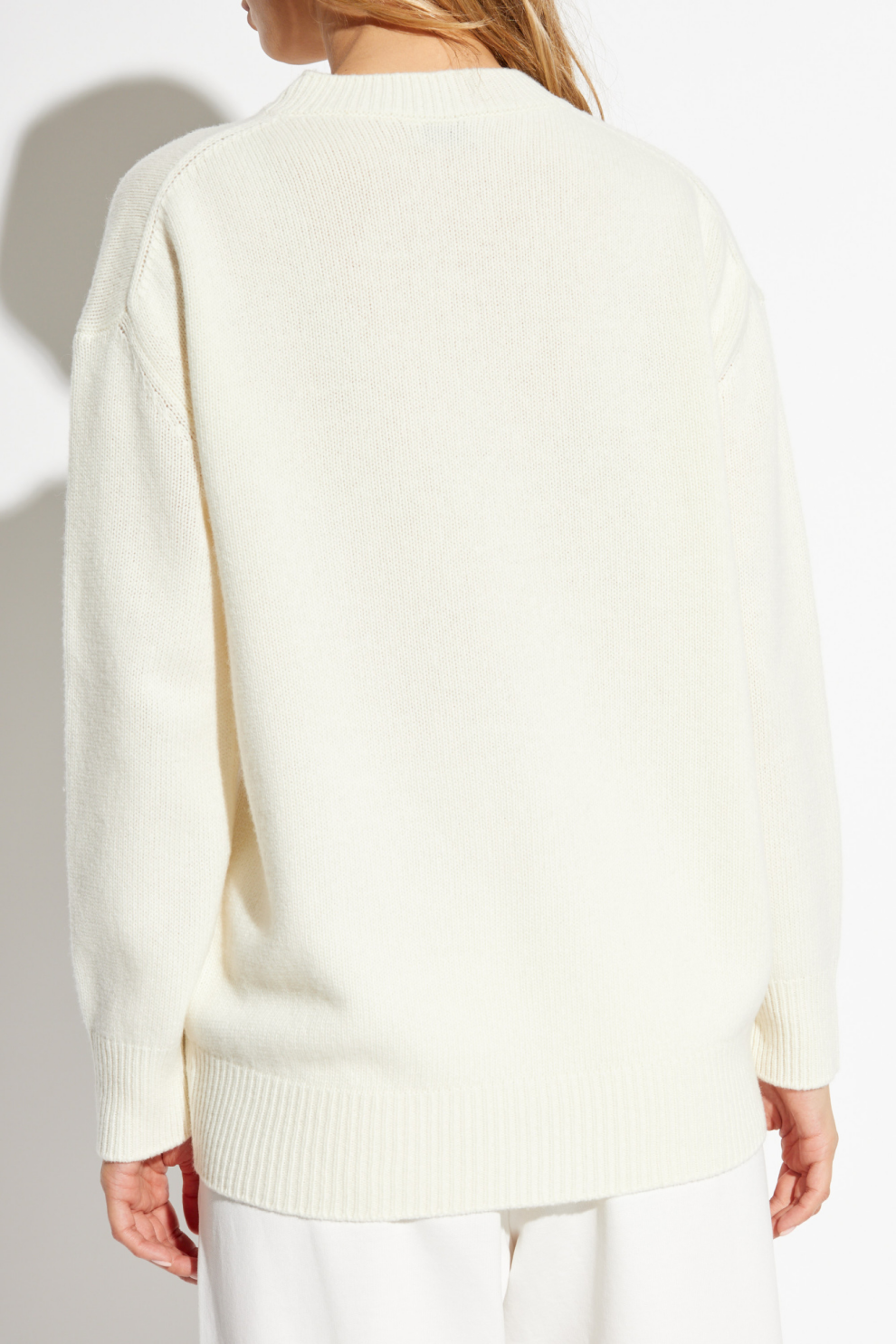 Cвитер Moncler с вышитым логотипом — воплощение утончённого вкуса, роскоши и непревзойдённого комфорта. Его нежный кремовый оттенок станет универсальным акцентом в вашем гардеробе, придавая образу лёгкость, элегантность и современную утонченность.