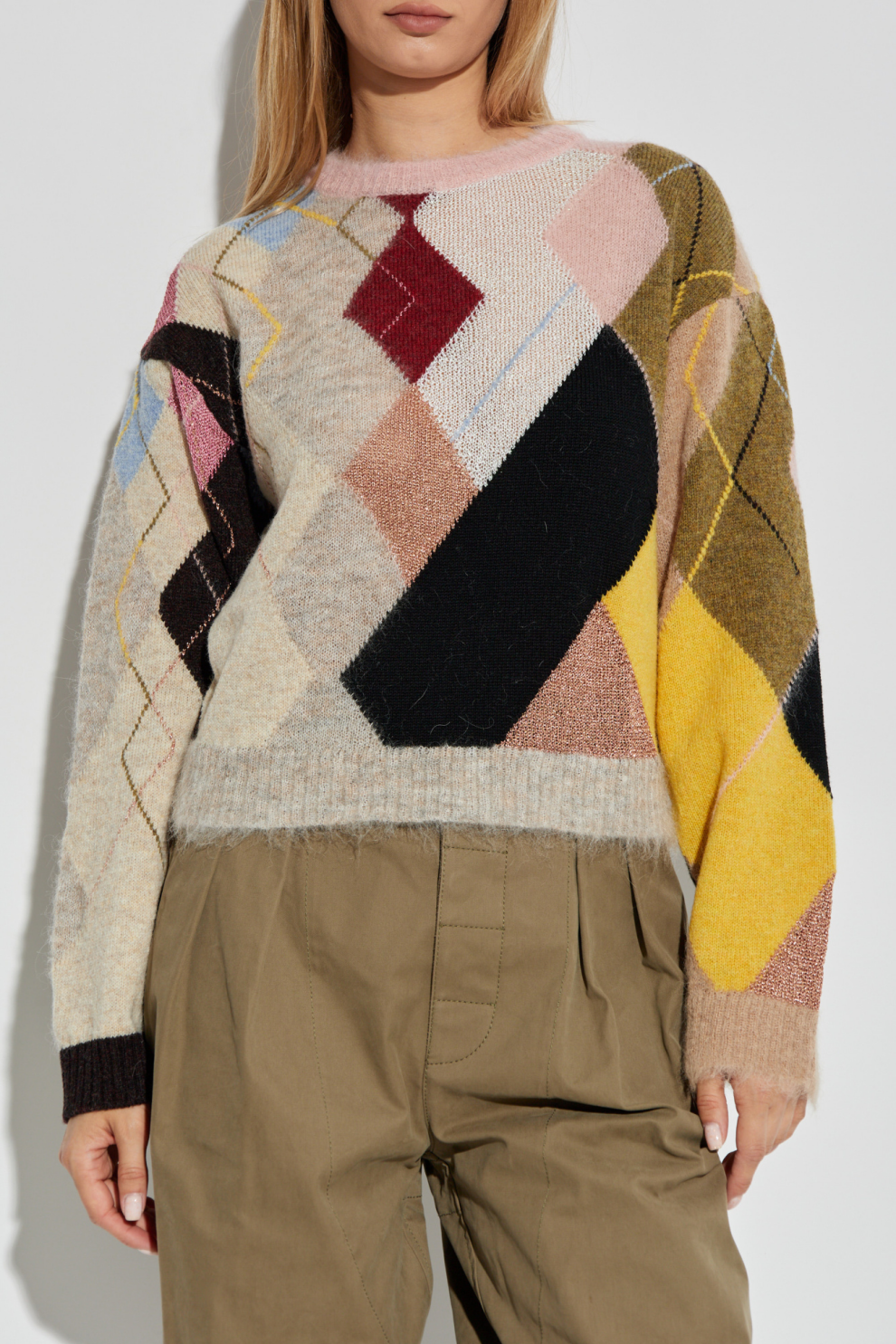 Этот роскошный свитер от Moschino из пре-коллекции осень/зима 2025 переосмысливает классическую эстетику трикотажа, превращая её в произведение текстильного искусства. Изготовленный из пушистой смеси мохера, альпаки и шерсти, он окутывает тело мягкостью и теплом, даря ощущение безупречного комфорта.