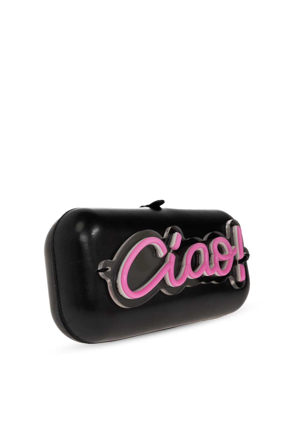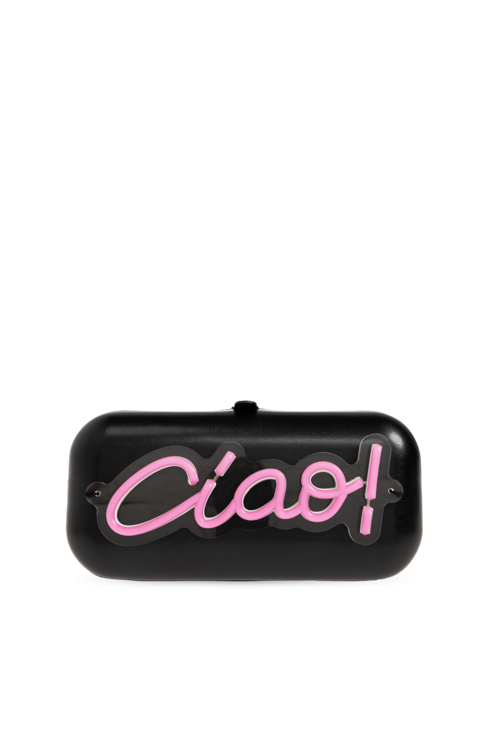 Главной особенностью дизайна становится неоново-розовая надпись «Ciao!» с выразительным трёхмерным эффектом, дополненная встроенной светодиодной подсветкой. Этот элемент создаёт яркое неоновое свечение, превращая аксессуар в настоящий арт-объект и подчёркивая дерзкий, ироничный дух Moschino.