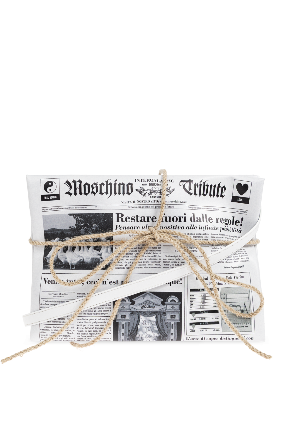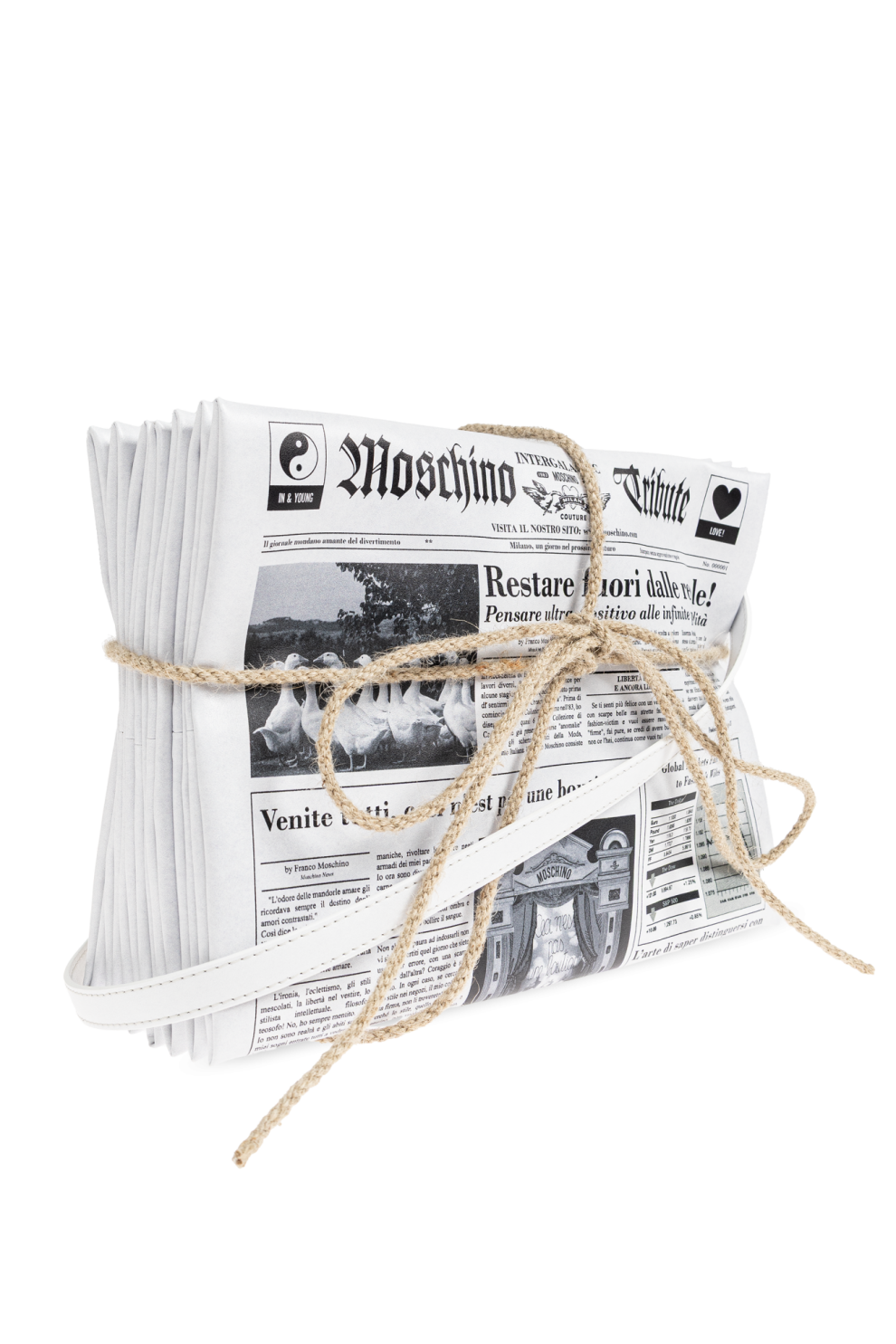 Преобладающий белый цвет усиливает эффект «газетной бумаги», в то время как специально обработанная кожа или инновационный материал с добавлением полиуретана достоверно имитирует её текстуру, обеспечивая при этом прочность и долговечность. Такое сочетание эстетики и технологии подчеркивает высокий уровень исполнения и креативный подход Moschino.