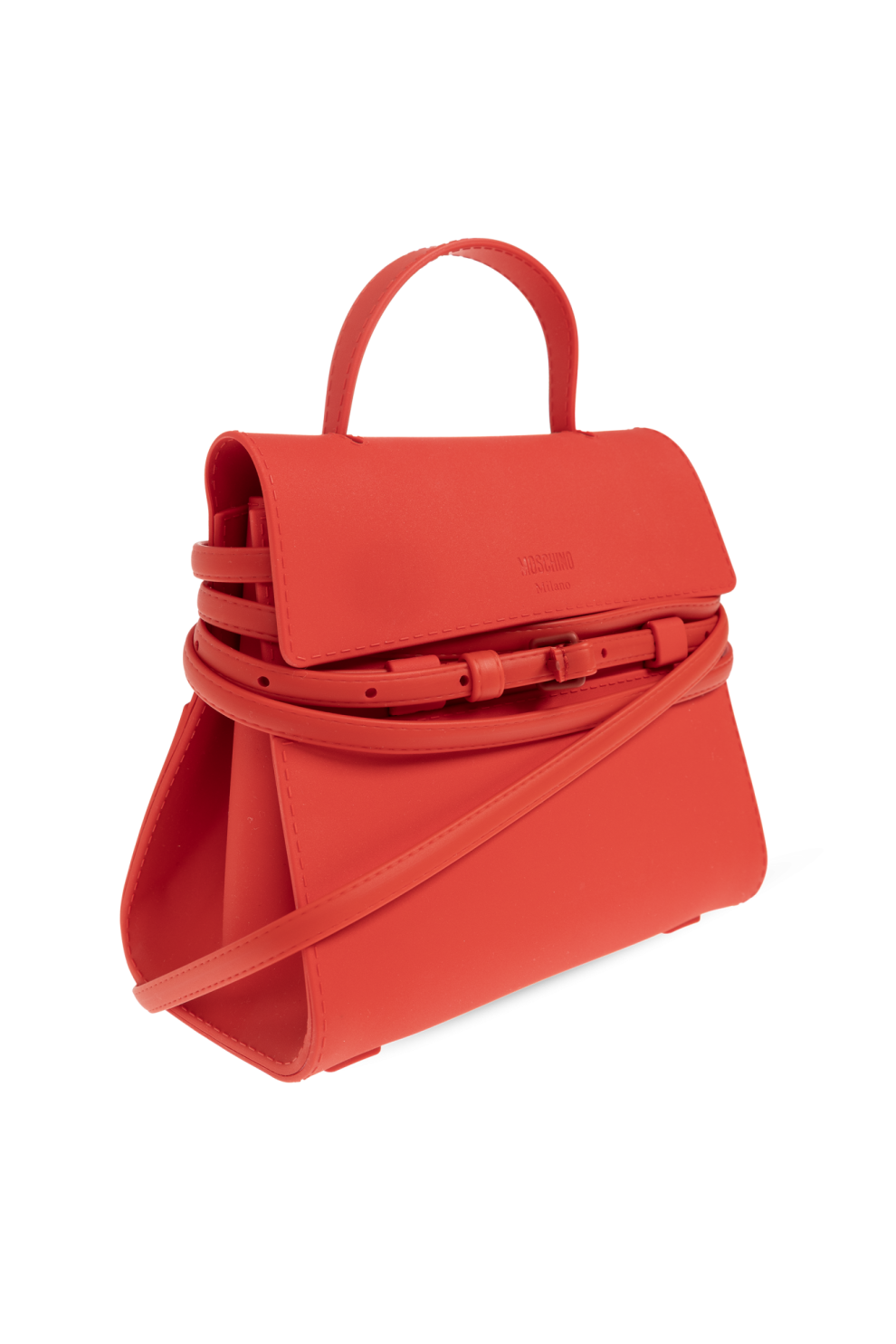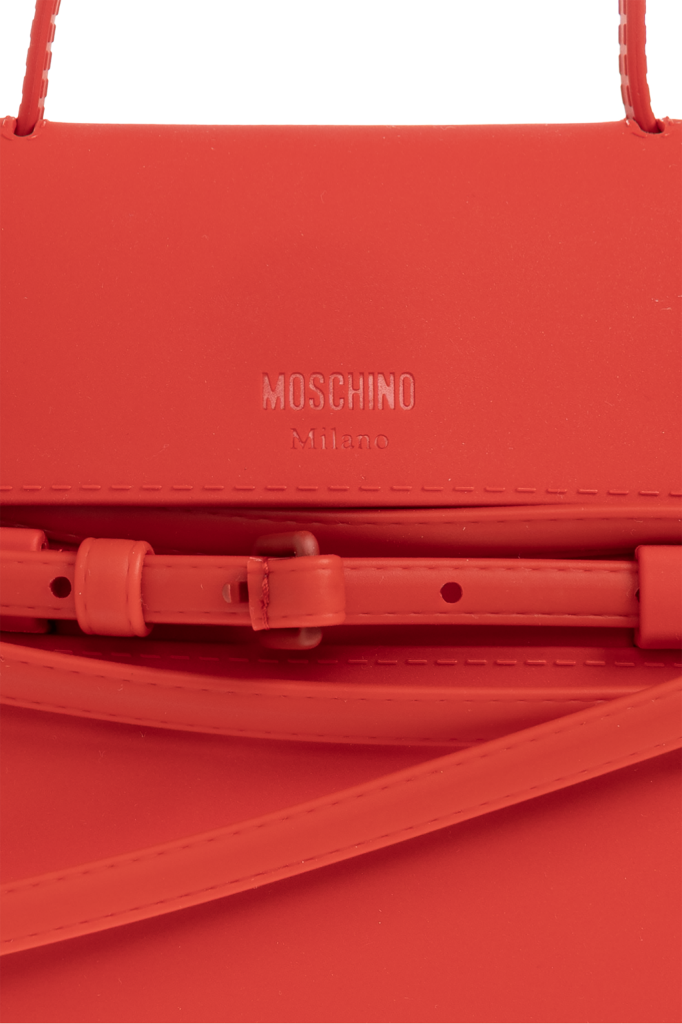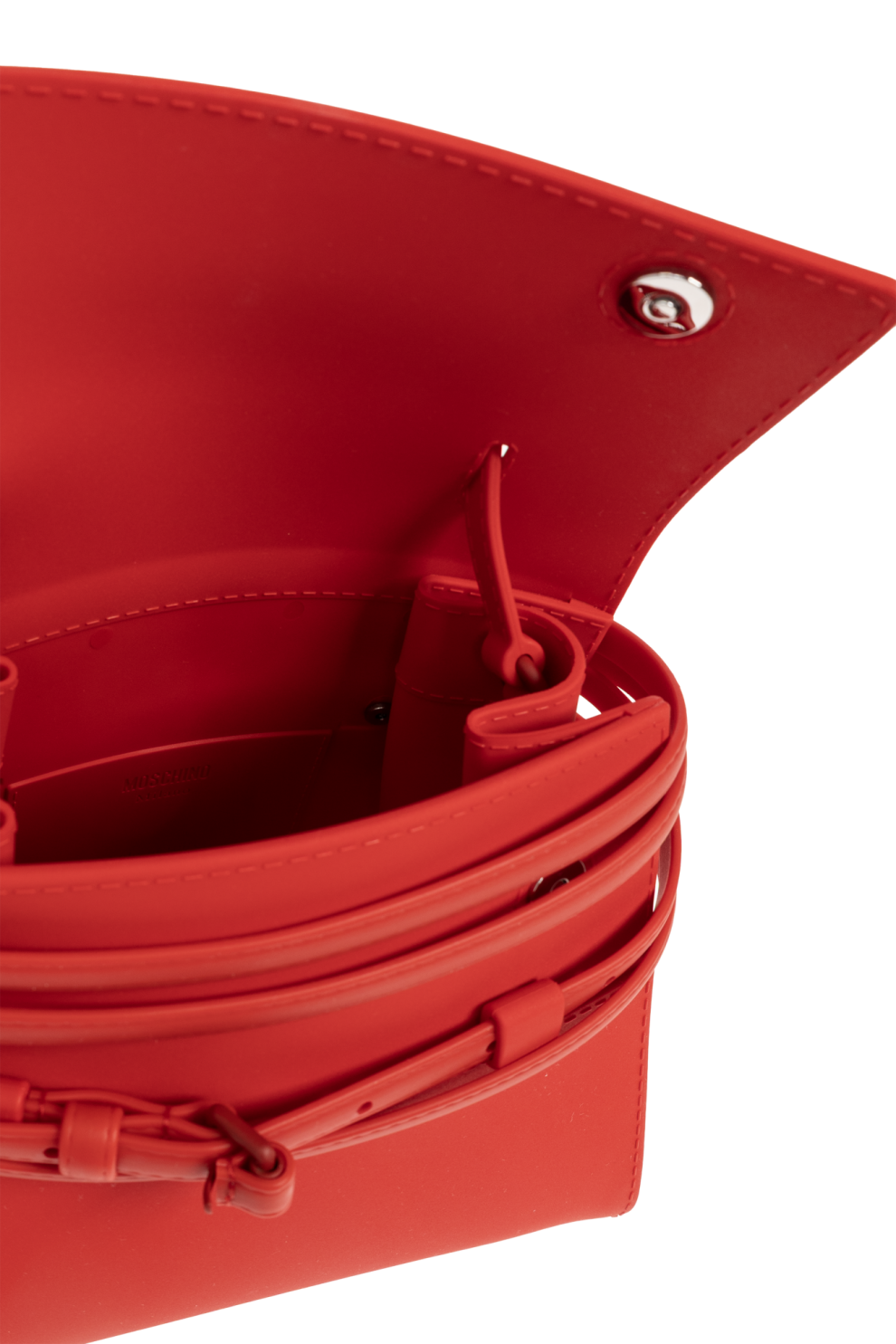 - Тиснёный логотип «MOSCHINO Milano» на клапане