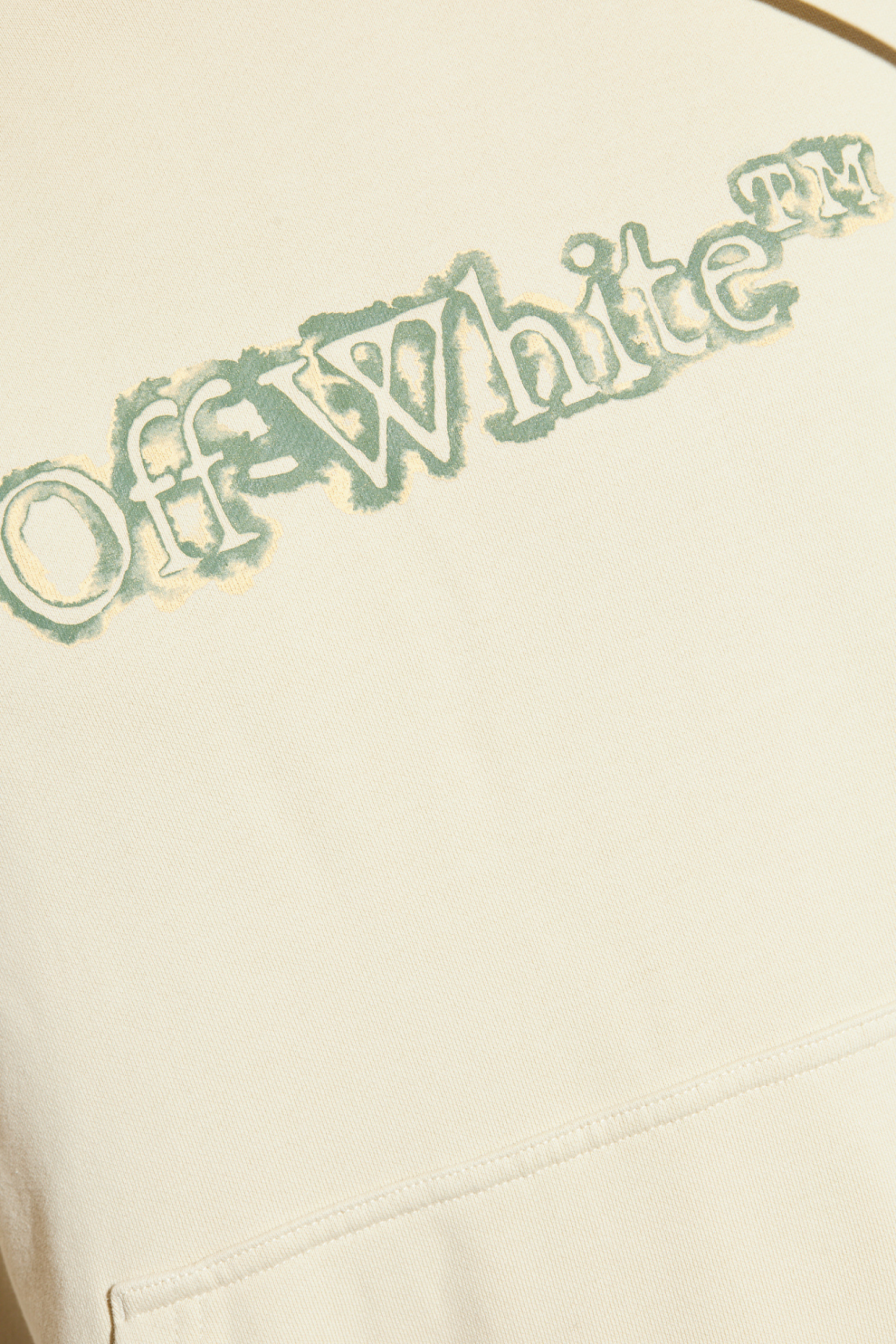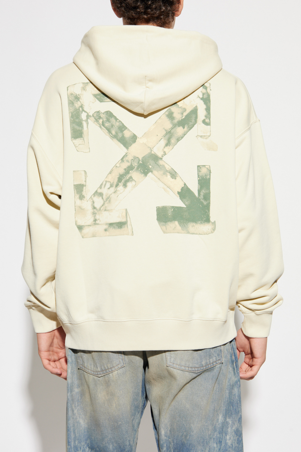 Спереди расположен функциональный карман-кенгуру, а на груди — узнаваемый логотип в нежных оттенках зелёного, имитирующий эффект состаривания. На спине — узнаваемый мотив скрещенных стрел — символ бренда Off-White, который идеально выделяет этот дизайн среди других.