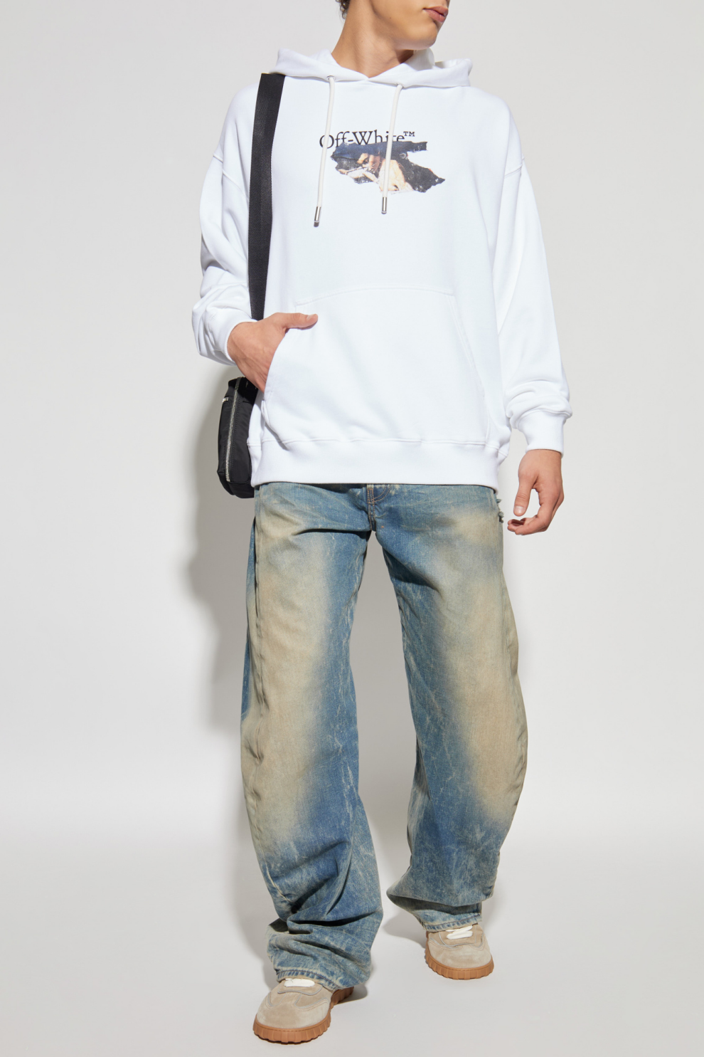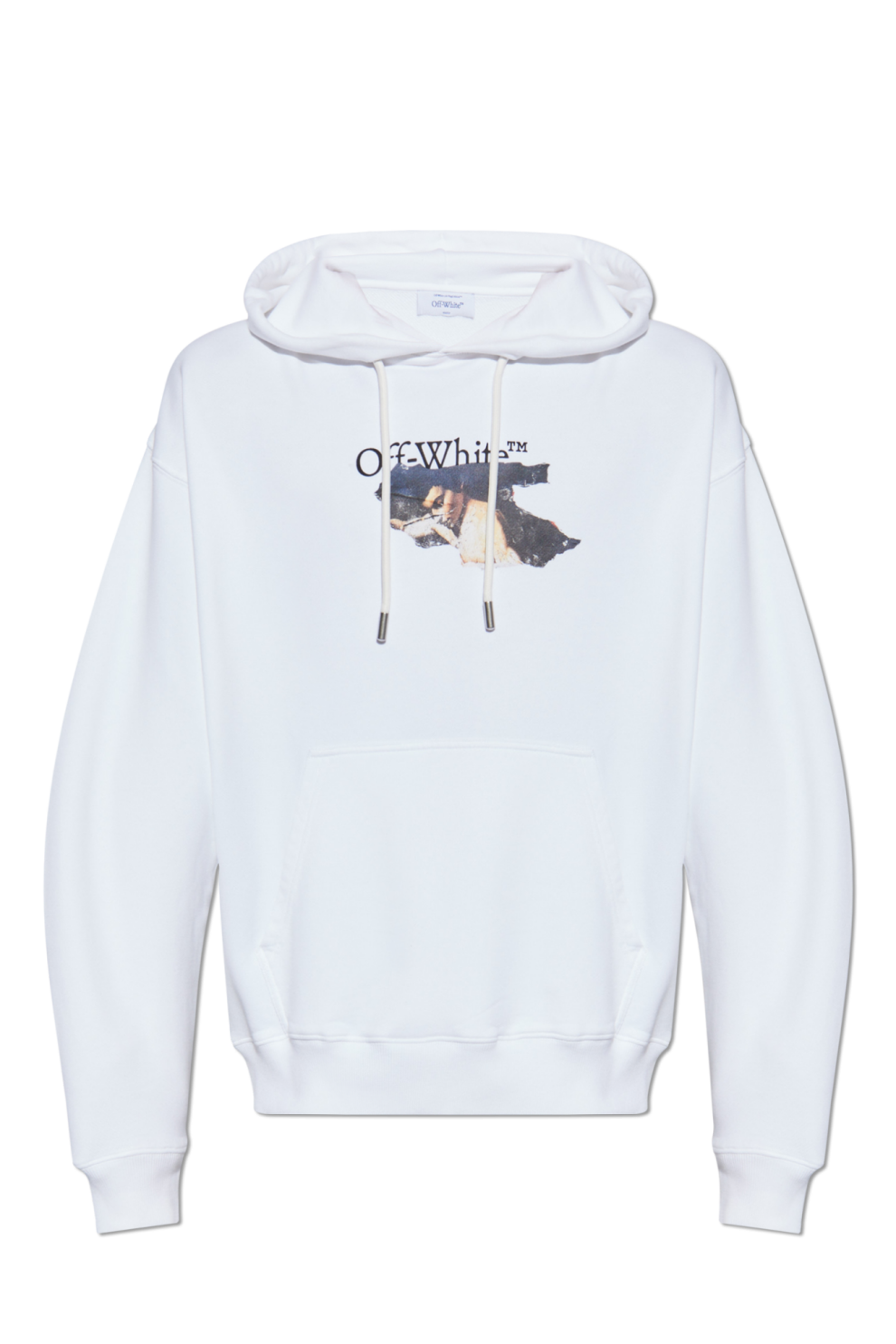 Идеально скроенная в стиле oversize, она очаровывает не только своим чисто-белым цветом , но и ярким принтом спереди – фрагментом художественной репродукции с графичным разрывом и гордой надписью «Off-White». На спине изящный мотив «перекрестья стрел» – культовый символ бренда, дополненный коллажной композицией и изысканными типографскими деталями. Тщательно изготовленная из высококачественного хлопка , эта толстовка обеспечивает непревзойденный комфорт и долговечность. Широкий практичный карман-кенгуру и регулируемый капюшон со шнурками и металлическими наконечниками подчёркивают её уникальный характер.