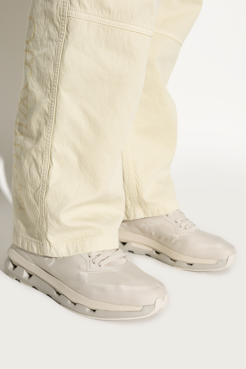 Лаконичные логотипы On, аккуратно размещенные на верхе, язычке и внутренней части, подчеркивают премиальный характер обуви и завершают образ в духе современного минимализма.