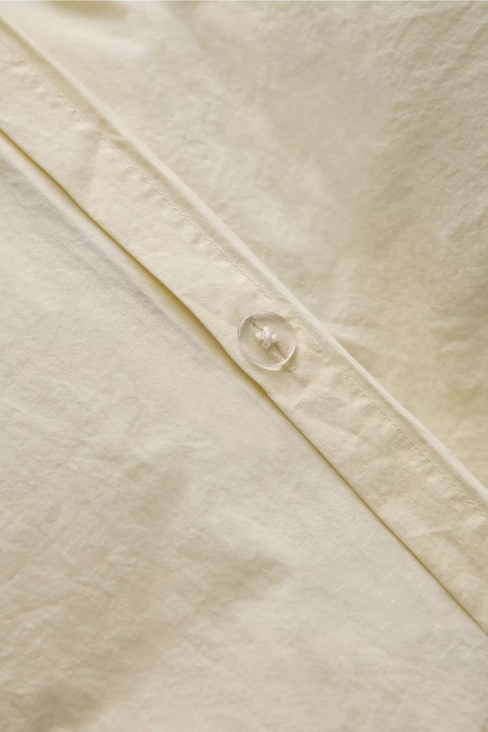 Окунитесь в атмосферу уюта и гармонии с комплектом постельного белья, созданным из мягкого и дышащего 100% хлопка в нежном сливочно-желтом цвете. Этот набор выполнен из гладкой перкали с плотным переплетением, которая приятно охлаждает кожу и идеально подходит для тёплого сна. Пододеяльник оснащён потайной застёжкой на пуговицах и внутренними завязками, чтобы одеяло всегда оставалось на месте. Наволочки имеют удобные боковые разрезы, обеспечивая аккуратный и опрятный вид. Благодаря лёгкой структуре ткани и натуральному составу, бельё легко стирается, быстро сохнет и не теряет форму. Этот комплект поможет создать целостный, гармоничный образ спальни — лаконичный, свежий и современный.