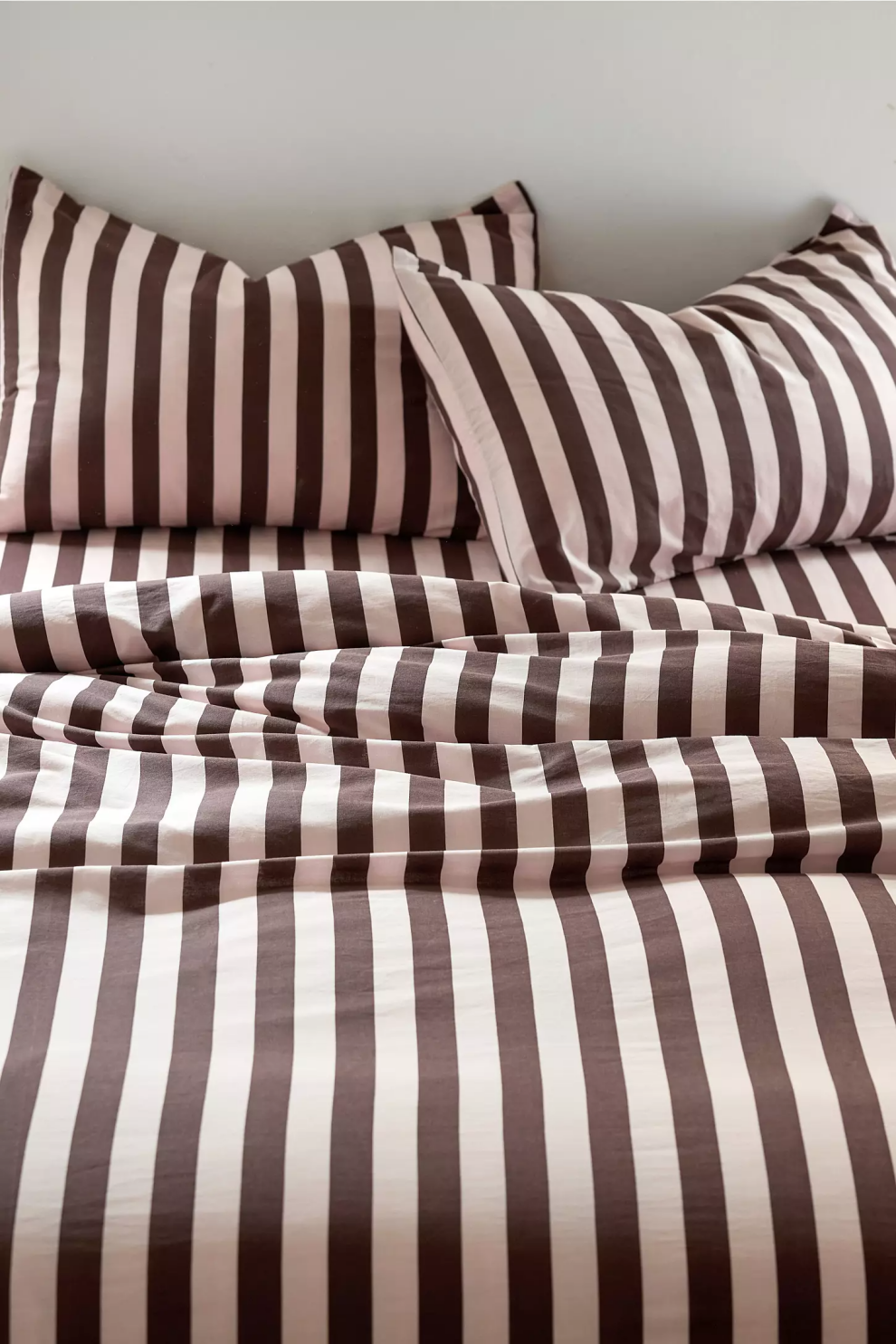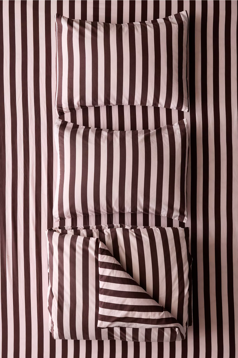 Погрузитесь в атмосферу лёгкости и гармонии с этим набором постельного белья Striped из мягкого, натурального хлопка. Тонкие полоски в оттенках пудрово-розового и черничного придают спальне чистый, свежий и современный вид, а двусторонний пододеяльник позволяет мгновенно менять настроение интерьера одним движением.