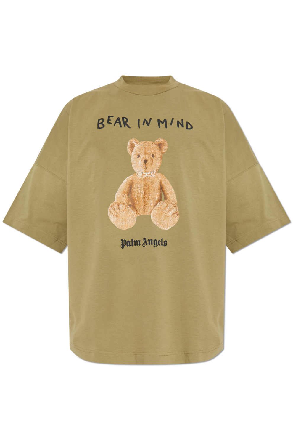 Доминирующий принт с плюшевым мишкой, яркая надпись «BEAR IN MIND» и готический логотип Palm Angels делают эту модель поистине уникальным дополнением к любому гардеробу. Изящный круглый вырез и изящная нашивка с логотипом на подоле завершают образ, подчеркивая непревзойденное чувство стиля .