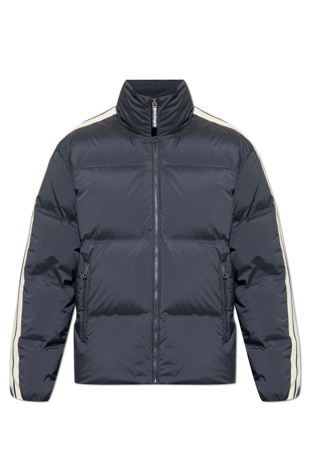 Пуховик Palm Angels с воротником-стойкой пленяет своей утончённой элегантностью, переосмысливая роскошный уличный стиль. Он выполнен в классическом, слегка свободном силуэте, а горизонтальная стёжка добавляет изысканности. Воротник-стойка защищает от ветра, подчёркивая спортивный и непринуждённый образ.