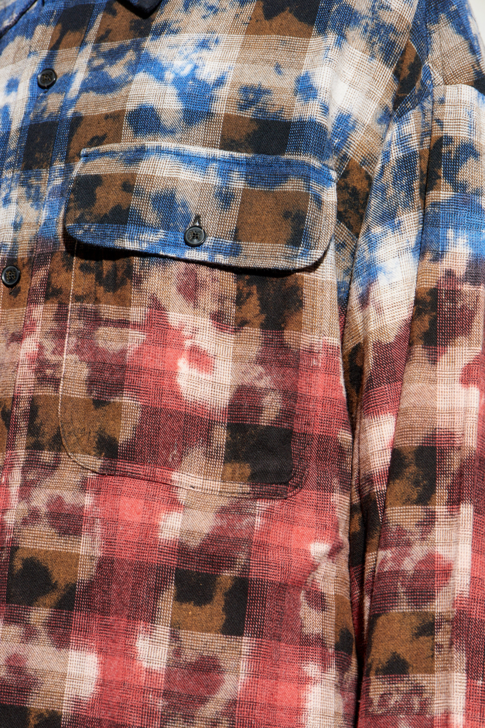 Мужская стеганая куртка с клетчатым узором от Palm Angels — идеальное сочетание современного стиля и изысканного комфорта. Она завораживает своим многоцветным мотивом: красный, синий, коричневый и белый цвета образуют искусно размытую клетку с лёгким эффектом тай-дай, создавая уникальный образ. Свободный крой oversize с длинными рукавами и классическим воротником подкупает своей непринуждённой элегантностью. Практичность модели дополняют два нагрудных кармана с клапанами и прочными застёжками на пуговицы. Яркий контрастный логотип на спине также привлекает внимание, отдавая дань уважения индивидуальности стиля Palm Angels. Чёрная окантовка на воротнике подчёркивает безупречный стиль. Тщательно подобранные хлопковые и полиэстеровые ткани обеспечивают комфорт и долговечность.