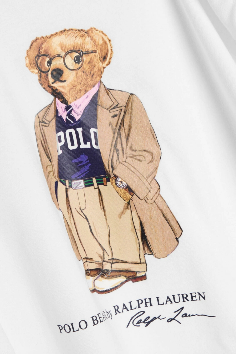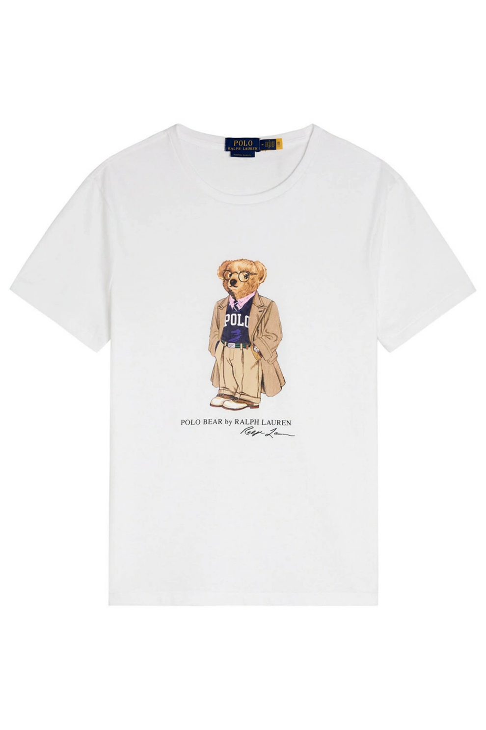 Передняя сторона украшена знаковым принтом Polo Bear, одетого в фирменный стиль бренда, создавая уникальный и узнаваемый образ. Ребристый круглый воротник и облегающий крой подчёркивают силуэт, а универсальный дизайн позволяет сочетать футболку с джинсами, брюками чинос или шортами.