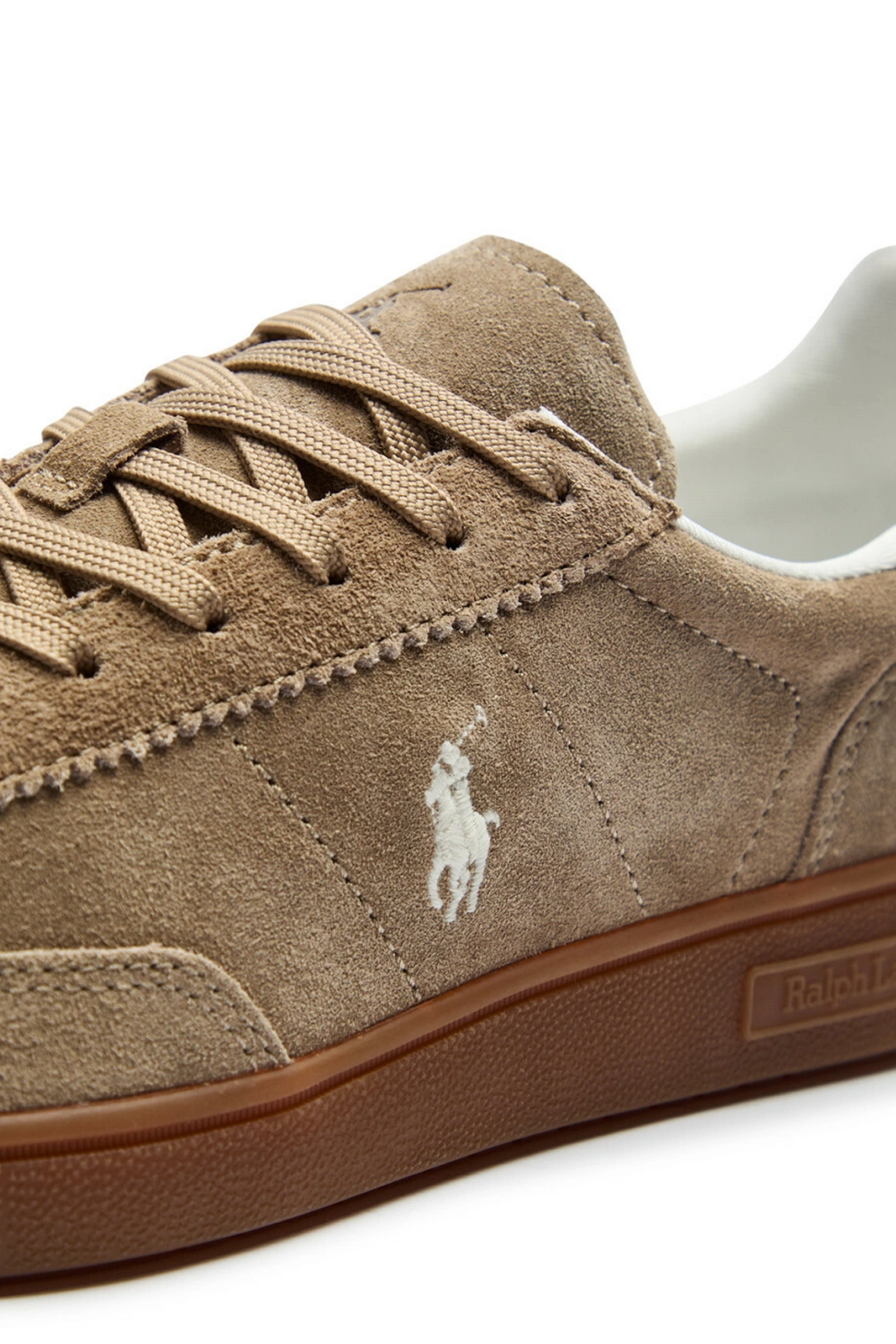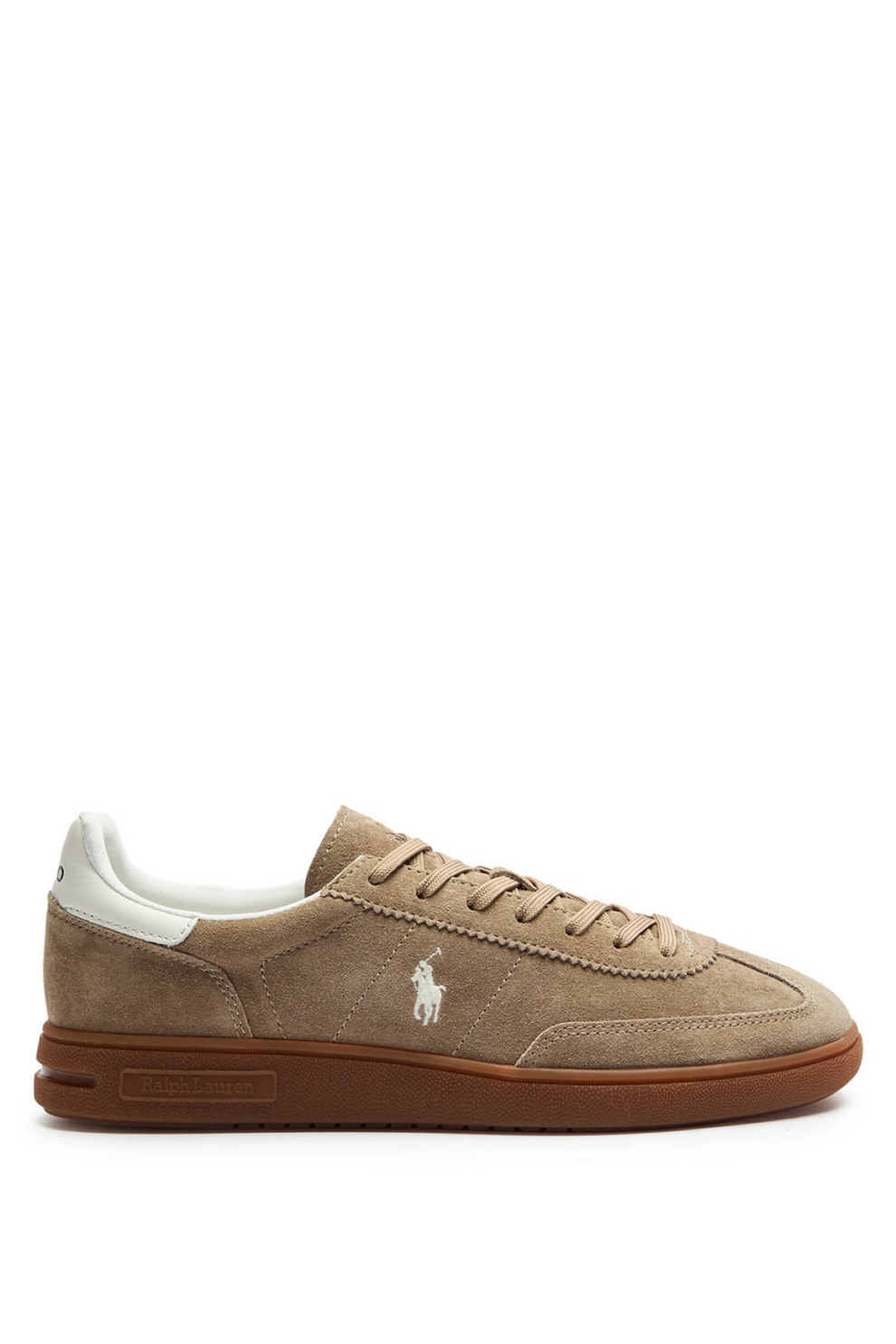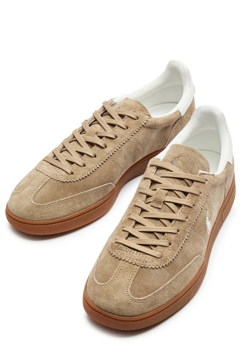Эти кроссовки Polo Ralph Lauren Bedford сочетают элегантность премиальной замши и современный спортивный стиль. Модель выполнена из качественной бежевой замши, дополнена панельной конструкцией и фирменной вышивкой дизайнерского герба, что придаёт обуви утончённый, узнаваемый акцент бренда.