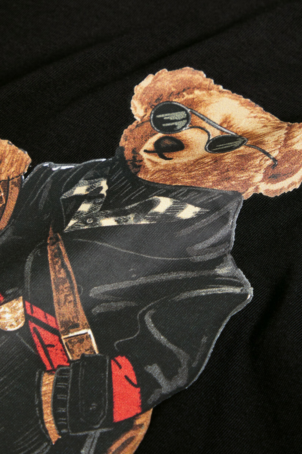 Эта футболка Polo Ralph Lauren сочетает классический премиальный крой и фирменный дизайнерский принт. На передней панели изображён знаменитый Polo Bear, одетый в стильный свитер с воротником-стойкой, клетчатую рубашку и кардиган с шалевым воротником, отражая фирменный преппи-стиль бренда. Принт дополнен подписью дизайнера, подчёркивая уникальность и престиж модели.