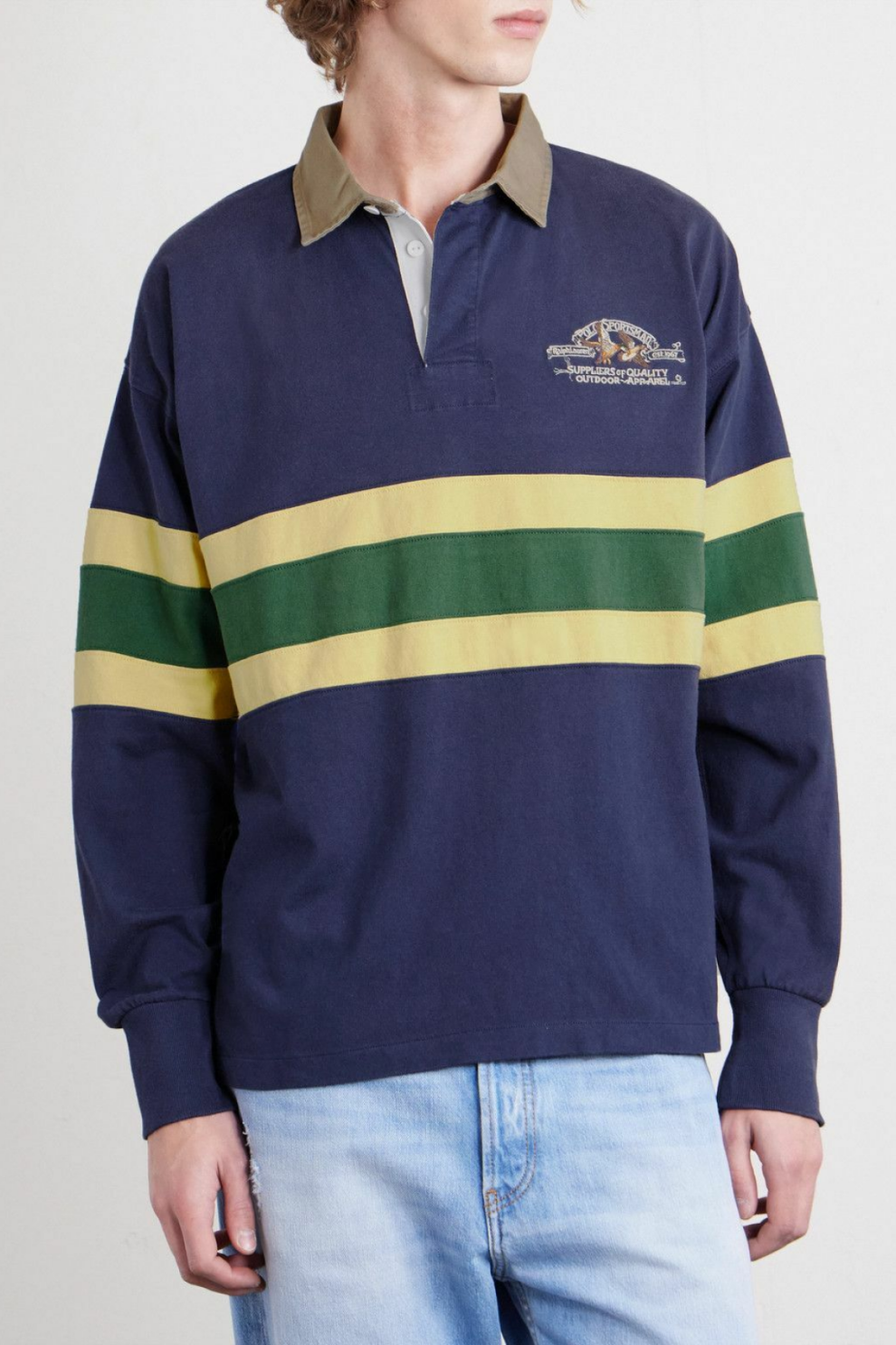 Эта синяя рубашка-регби от Polo Ralph Lauren входит в коллекцию, вдохновлённую пасторальной атмосферой долины Гудзон в Нью-Йорке. Модель выполнена из мягкого, плотного хлопкового джерси и украшена тремя контрастными полосками, создающими выразительный, но сдержанный ритм дизайна. Особый характер изделию придаёт архивный логотип с изображением уток-крякв — тонкая отсылка к наследию бренда и его любви к природе. Фирменная нашивка на подоле завершает образ, делая эту рубашку стильным и самобытным элементом мужского гардероба.