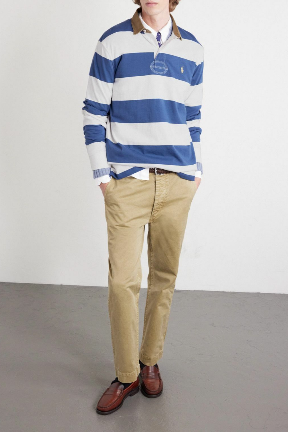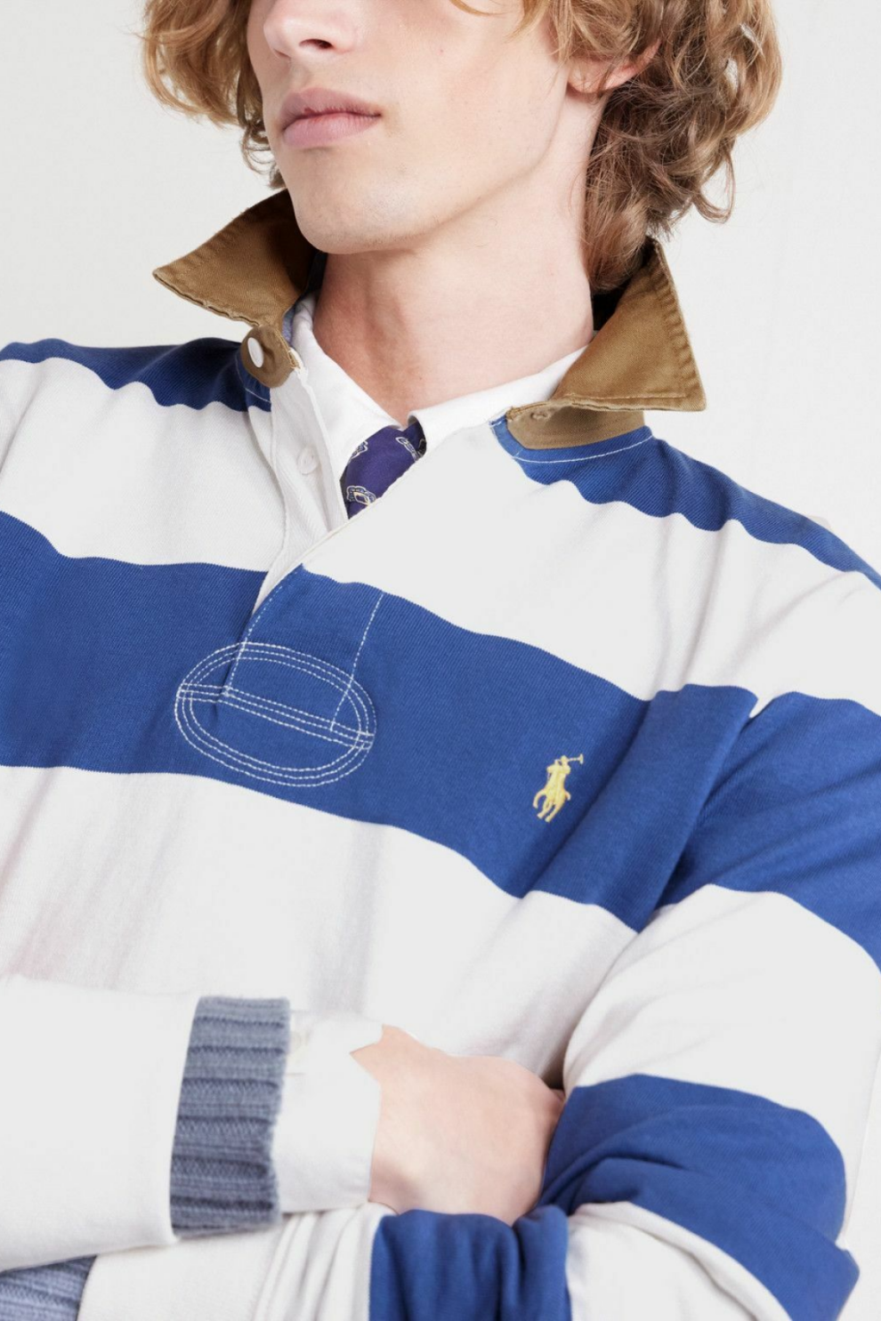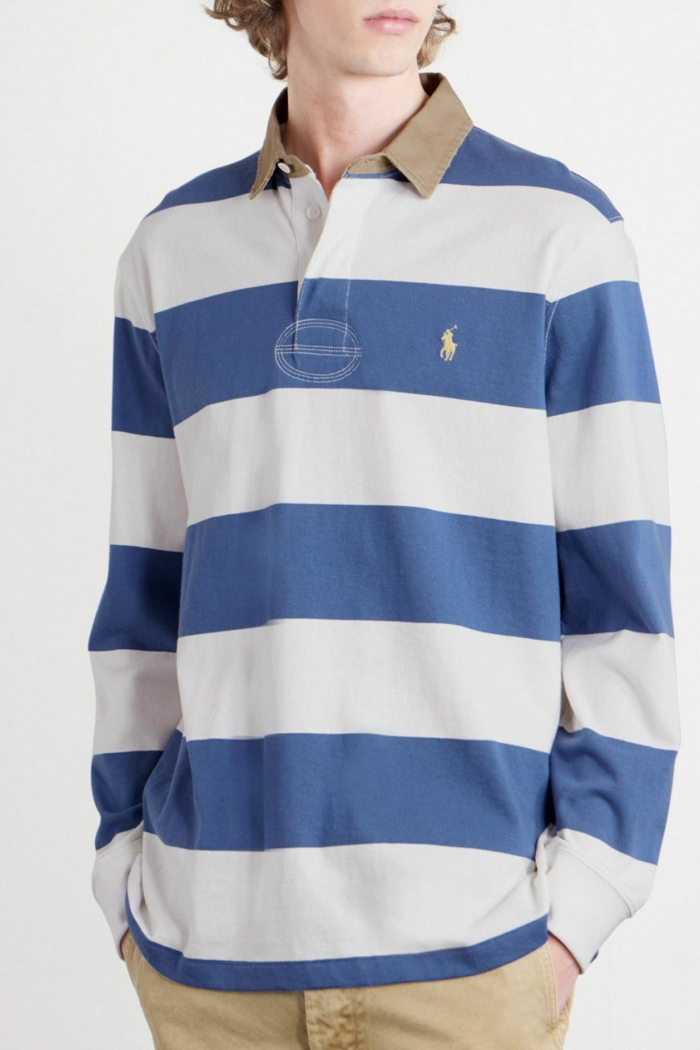 Сине-белая регбийная рубашка Polo Ralph Lauren сочетает спортивный характер и вневременную эстетику. Изготовленная из высококачественного хлопкового джерси, она обеспечивает комфорт и свободу движений. Классический контрастный воротник и аккуратная планка на пуговицах формируют чистый, сбалансированный силуэт, уместный как в расслабленных, так и в более собранных образах. Фирменная вышивка Polo Pony на груди выступает узнаваемым акцентом, символизирующим традиции и статус бренда.