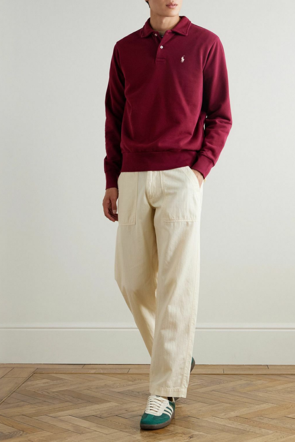 Знаковый логотип с вышивкой Polo Pony, выполненный с ювелирной точностью в 982 стежка, служит символом мастерства и внимания к деталям, присущих бренду. Аккуратный воротник поло, застёжка на пуговицах и эластичные трикотажные манжеты придают образу утончённость, не лишая его комфорта.