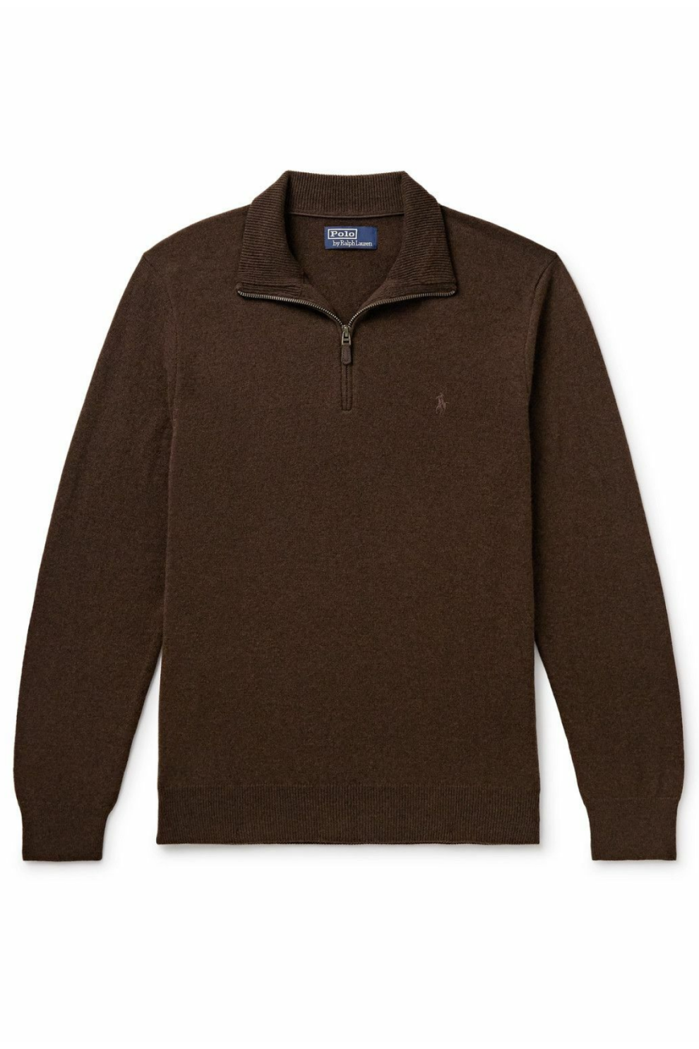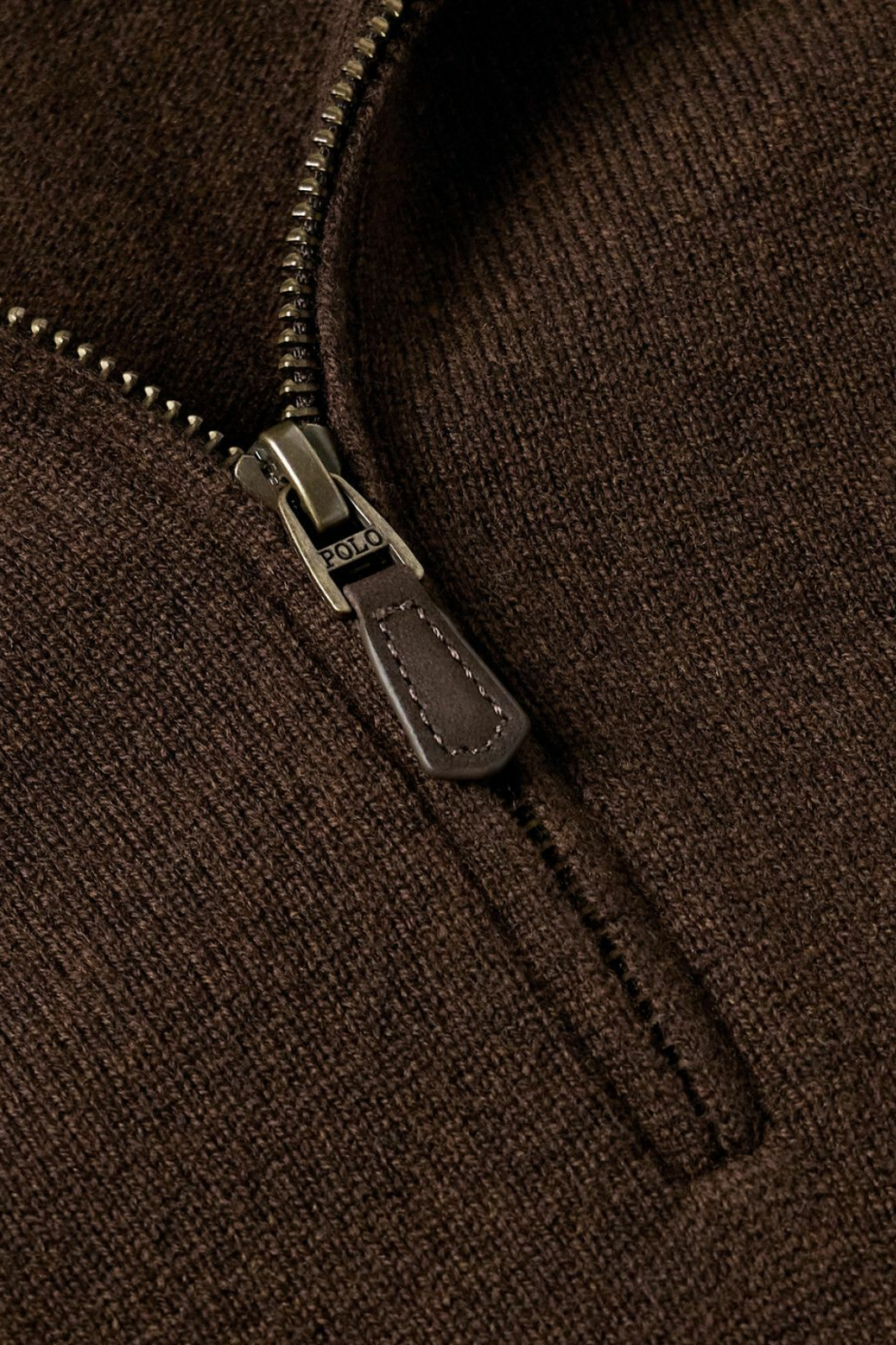 Тёплый коричневый меланж делает модель универсальной для сочетания с джинсами, брюками чинос или под пиджак, создавая элегантный и одновременно непринуждённый образ. Этот свитер — идеальный выбор для мужчин, ценящих премиальное качество, комфорт и классику Ralph Lauren.
