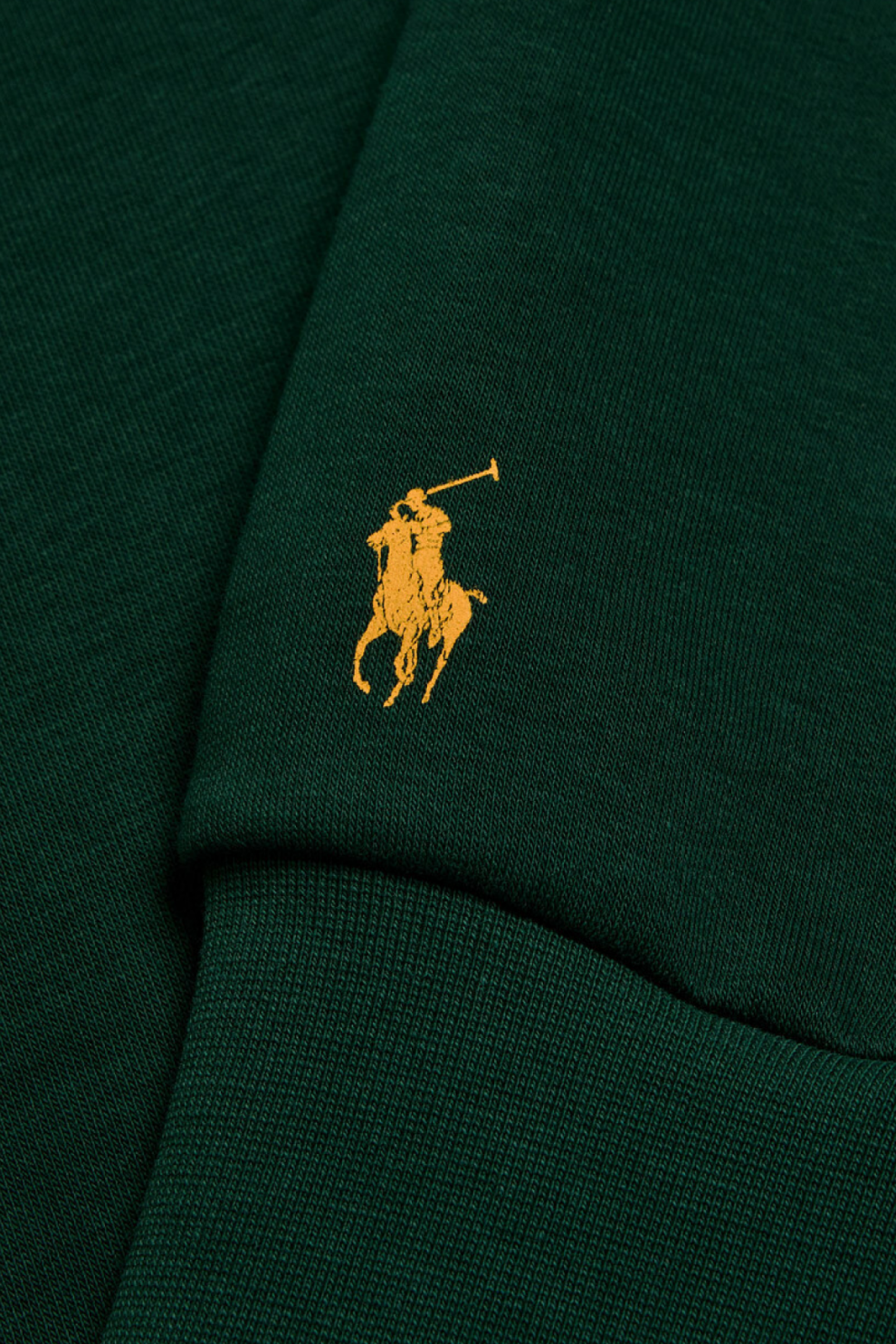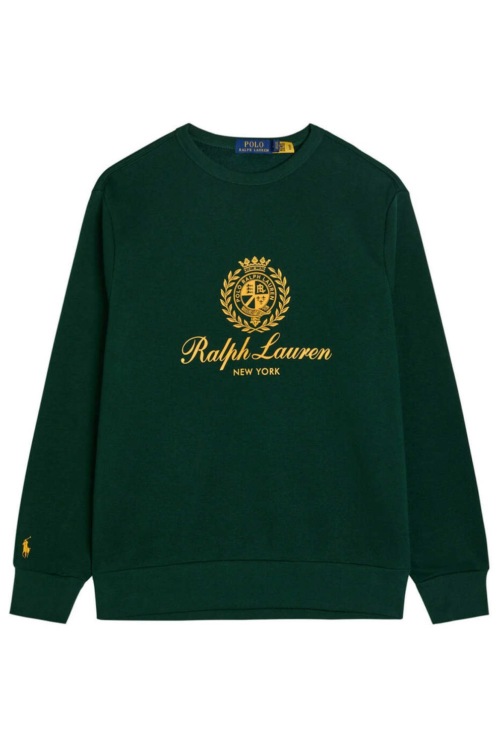 Спереди украшен дизайнерским принтом с логотипом Polo, создавая узнаваемый акцент, а ребристые манжеты и воротник обеспечивают идеальную посадку и сохраняют форму изделия. Свободный крой делает свитшот универсальным элементом гардероба, легко комбинируемым с джинсами, брюками чинос или спортивными штанами.