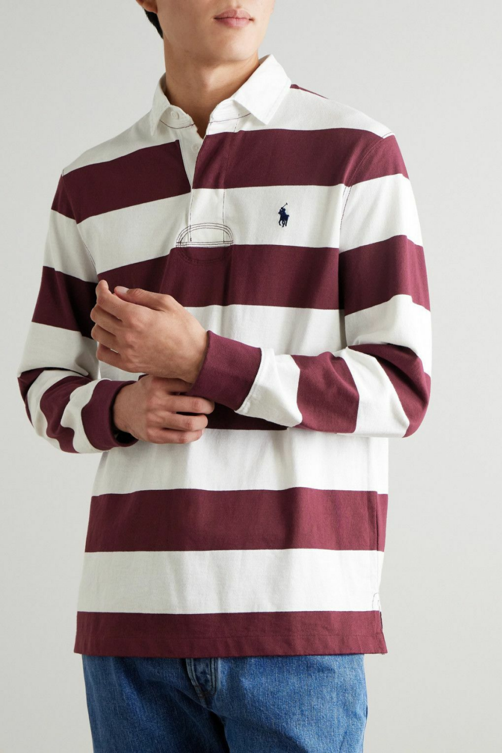 Лонгслив-поло от Polo Ralph Lauren сочетает классический спортивный стиль и премиальные материалы. Горизонтальные бордовые полосы и традиционный воротник-поло вдохновлены классическими регбийными моделями, аккуратная вышивка логотипа Pony на груди подчёркивает престиж бренда.