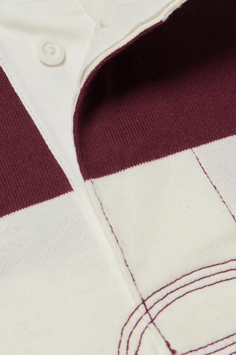 Модель выполнена из 100% хлопкового джерси, обеспечивающего мягкость, комфорт и лёгкую эластичность для свободы движений. Свободный крой делает поло идеальным выбором для повседневного гардероба, а бордовый оттенок с контрастными полосами добавляет стильный акцент к образу.
