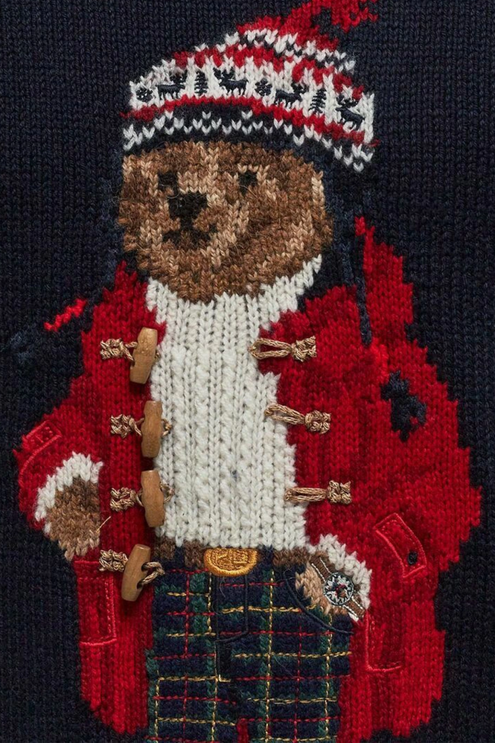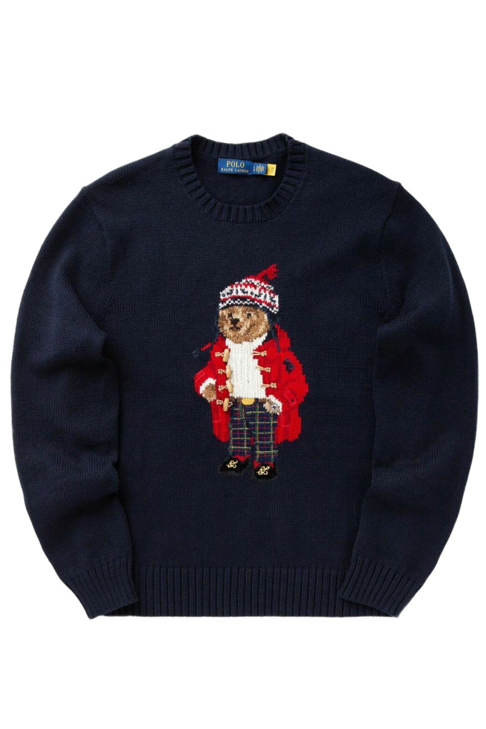 Фирменный медведь Polo Bear вышит на груди, добавляя праздничный и игривый акцент к классической форме пуловера. Длинные рукава и круглый вырез создают универсальный силуэт, который легко комбинируется с джинсами, брюками чинос или даже слоится с рубашкой.