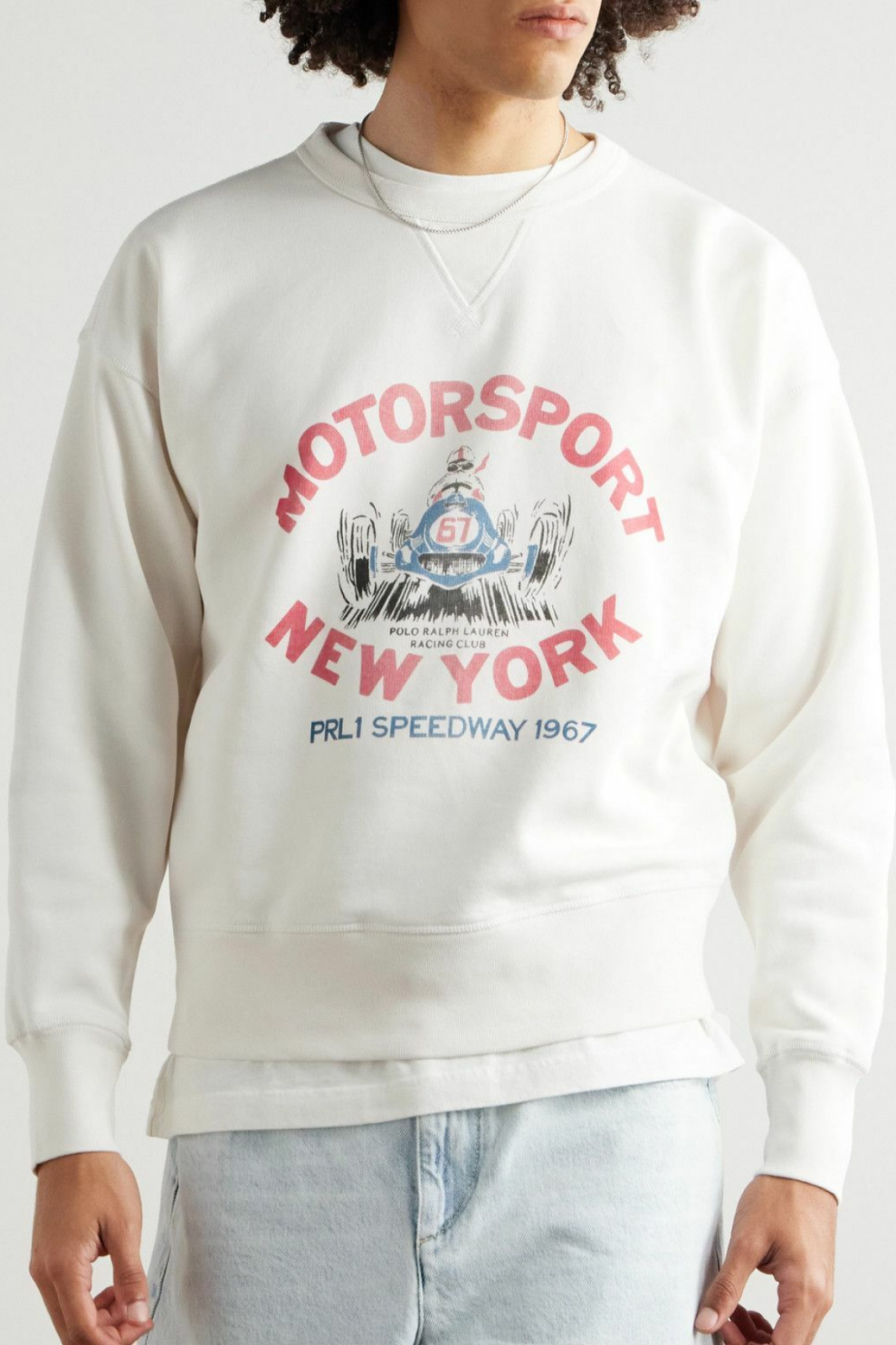 Этот свитшот Polo Ralph Lauren объединяет в себе классический комфорт и историческую эстетику бренда. Фирменная графика в стиле винтажных гонок придаёт изделию ретро-акцент, который подчёркивает спортивное наследие марки.