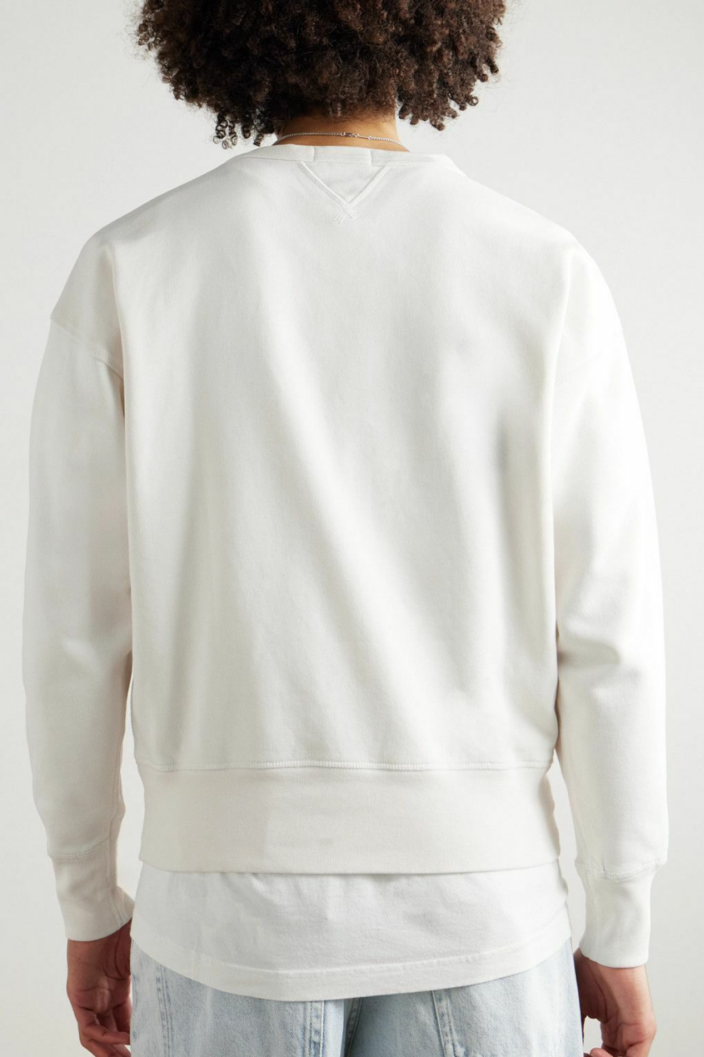 Модель выполнена из мягкого хлопково-полиэстерового джерси, обеспечивающего комфорт на каждый день. Свитшот имеет расслабленный силуэт, рифлёные манжеты и V-образные вставки на вырезе горловины и сзади, создавая аккуратный и стильный силуэт.