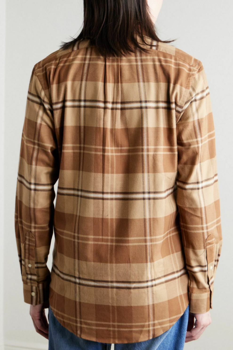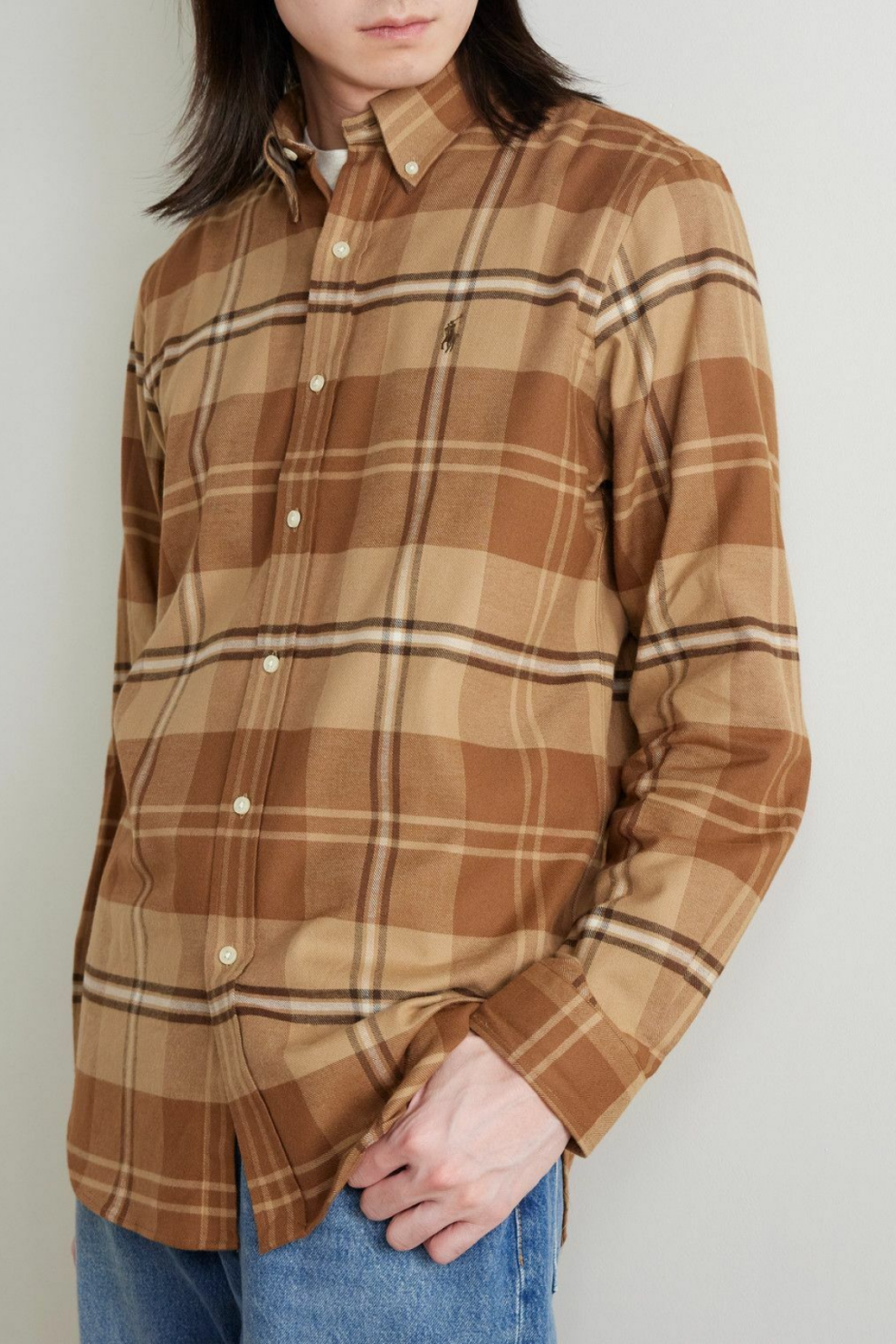 Коричневая клетка придаёт образу глубину и универсальность, легко вписываясь как в повседневные, так и в более собранные образы. Классический воротник button-down, аккуратные округлые манжеты и кокетка с разрезом и складками на спинке подчёркивают фирменный подход бренда к деталям и посадке. Легендарный вышитый Polo Pony на груди выступает сдержанным, но узнаваемым акцентом, подтверждающим статус изделия.