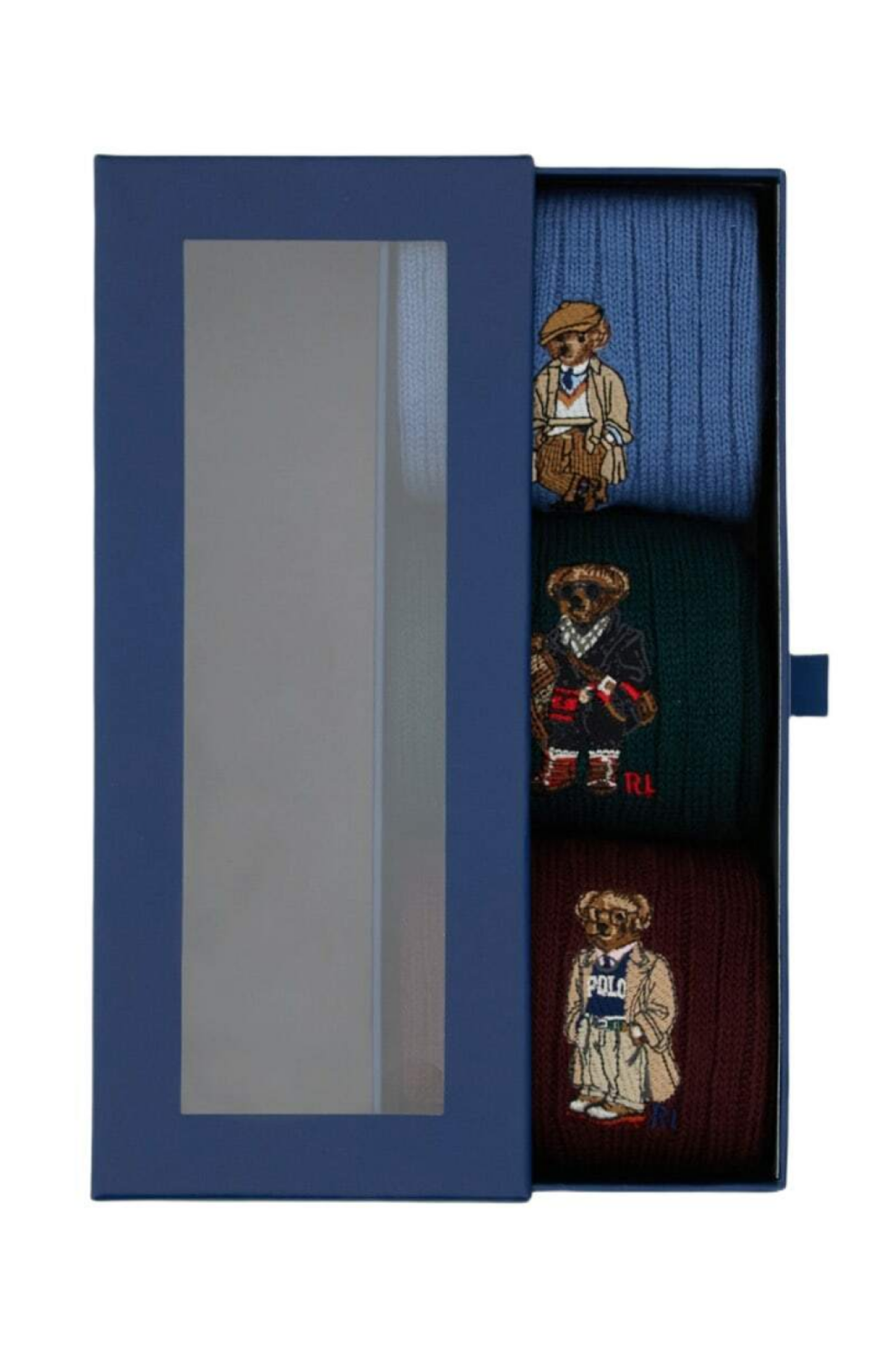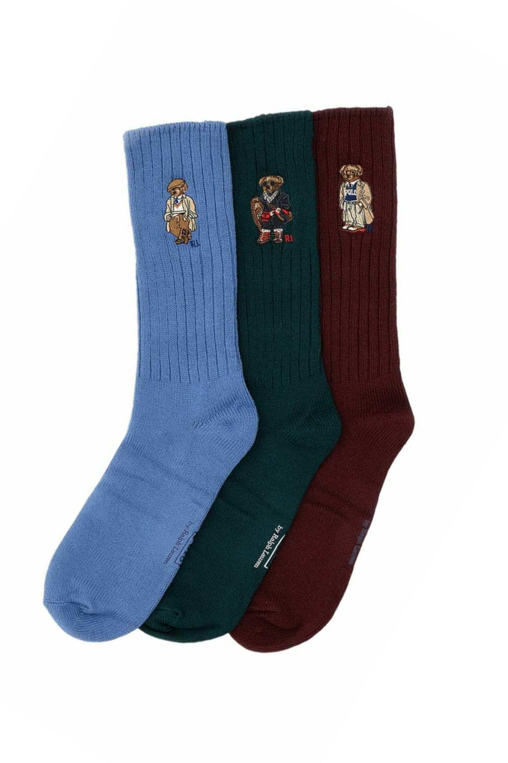 Этот набор носков Polo Ralph Lauren сочетает в себе комфорт и премиальный стиль. В комплект входят три пары в синем, зелёном и бордовом цветах, каждая украшена аккуратной вышивкой бренда, подчёркивающей элегантность и внимание к деталям.