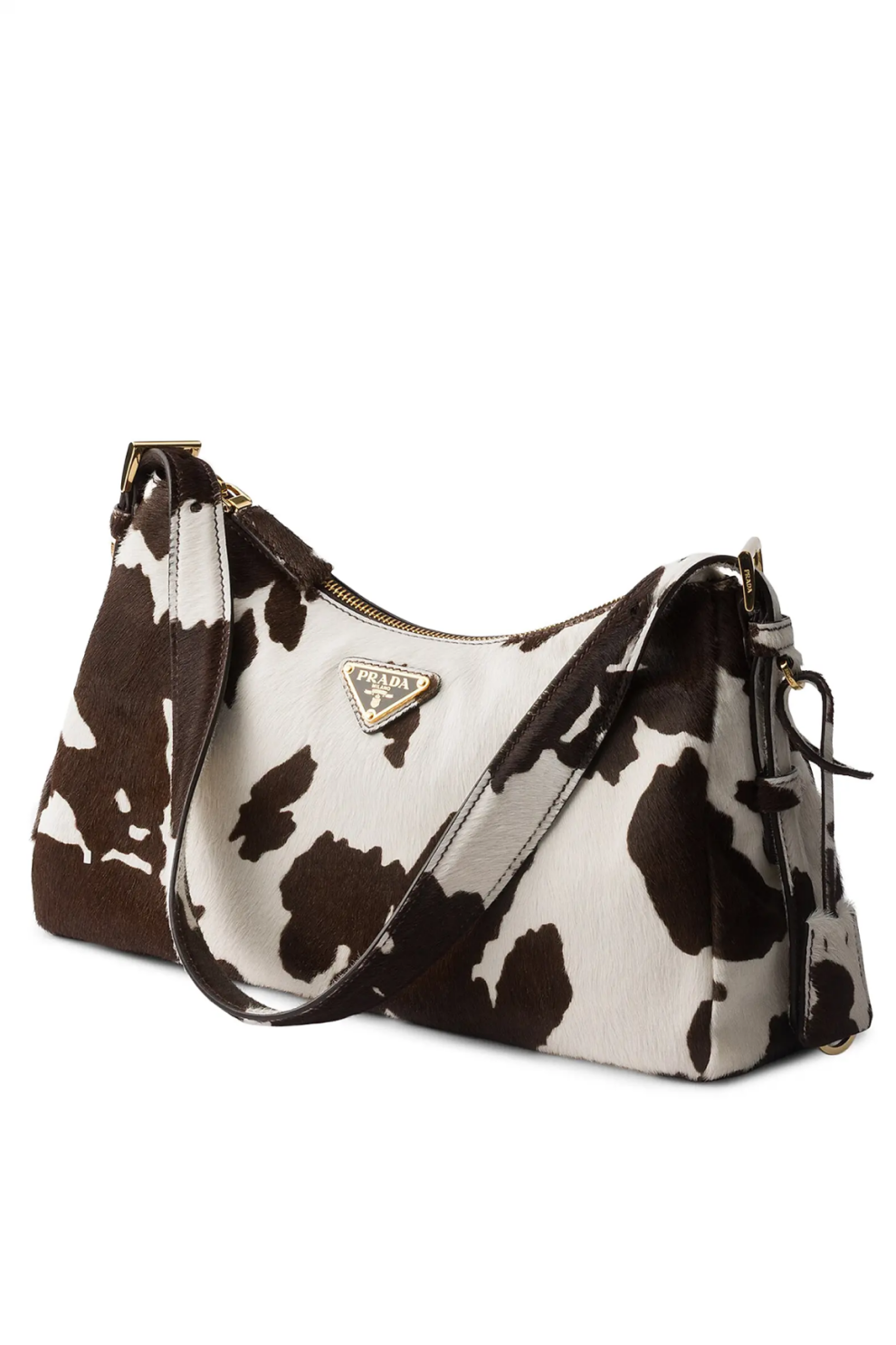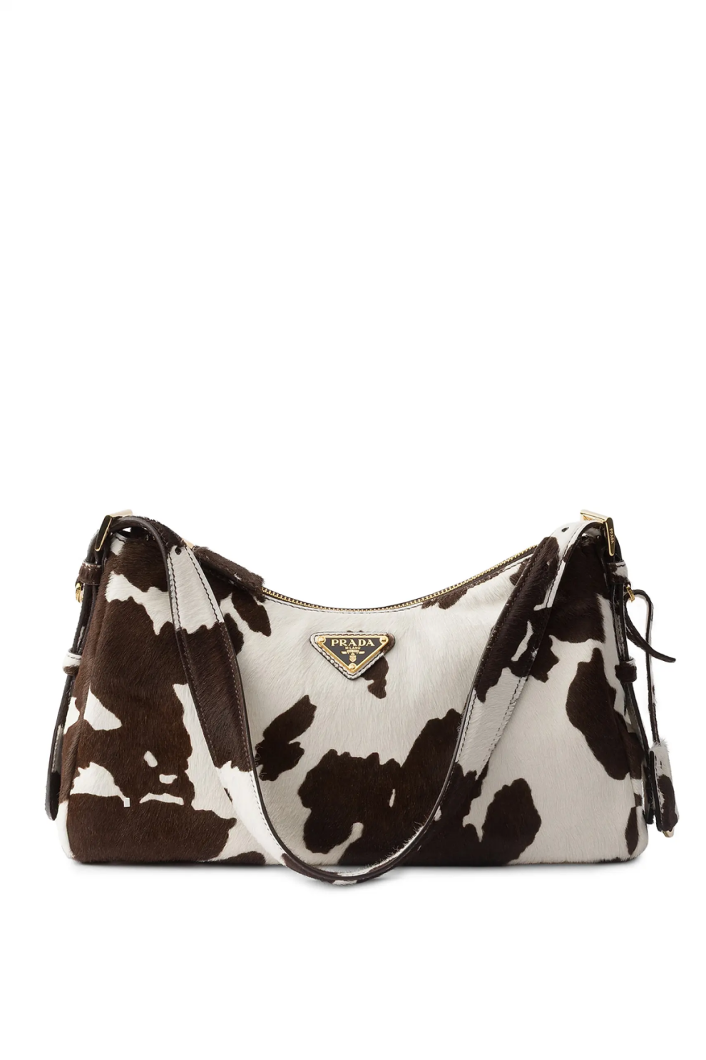 Сумка через плечо Prada Aimée Medium — выразительный аксессуар, в котором культовая элегантность Дома встречается с дерзким, модным акцентом. Модель выполнена из высококачественной телячьей кожи с эффектным принтом в коровьей расцветке, создающим ощущение тактильной глубины и визуальной динамики. Этот контрастный мотив превращает сумку в яркое заявление, оставаясь при этом безупречно сбалансированным и утонченным.