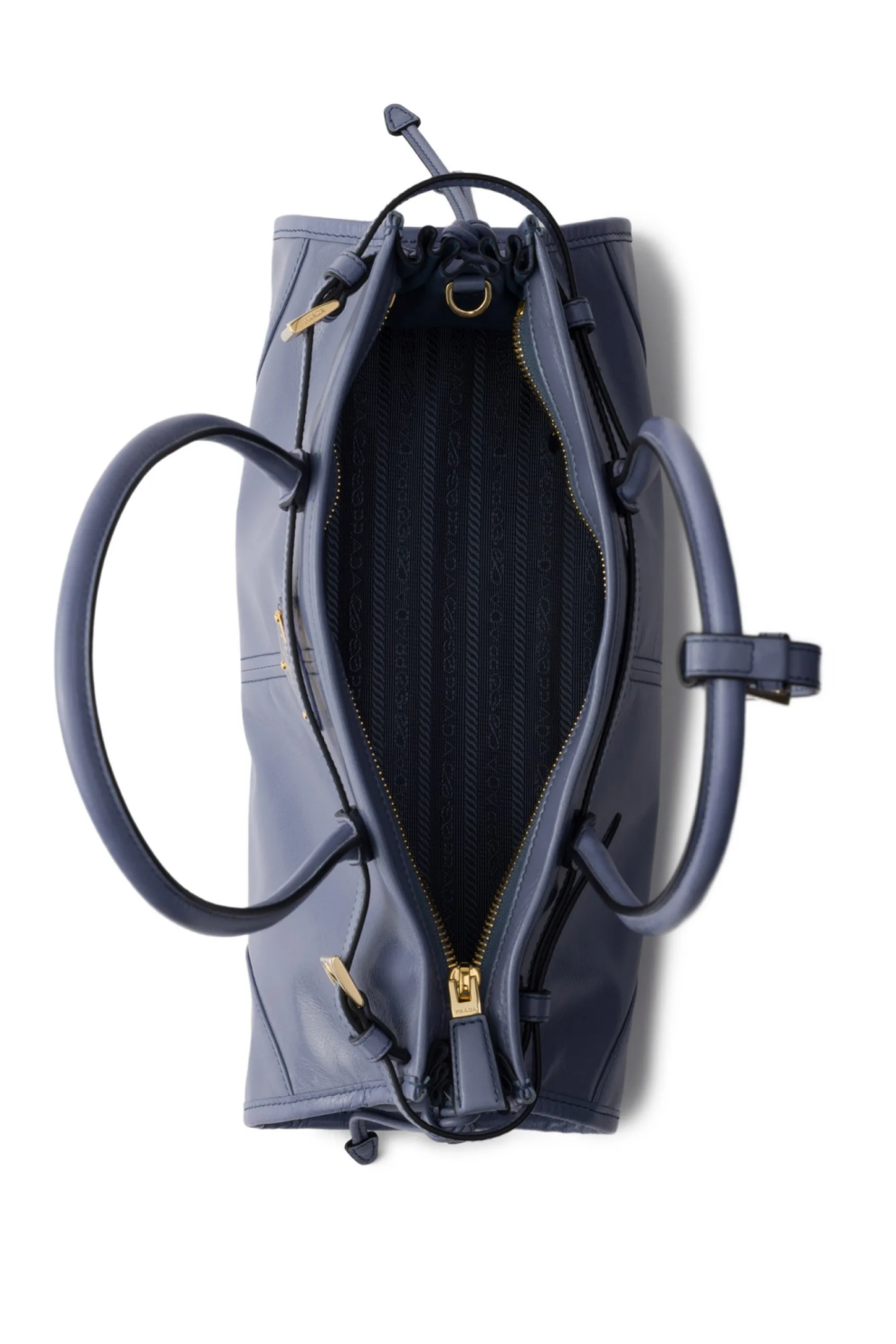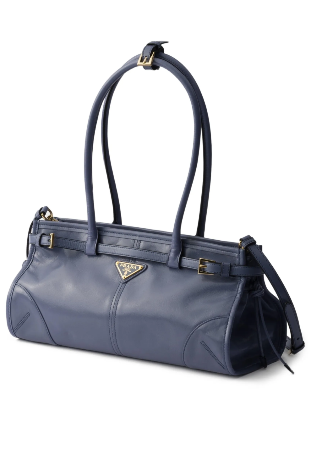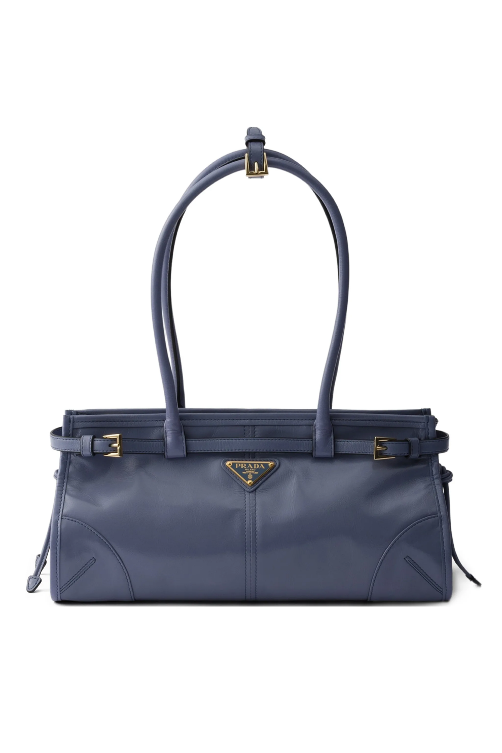 Изысканная модель Bonnie Medium от Prada — гармоничное сочетание лаконичного дизайна и продуманной функциональности. Сумка выполнена из гладкой телячьей кожи насыщенного серо-голубого оттенка, который придаёт образу свежесть и современную выразительность.