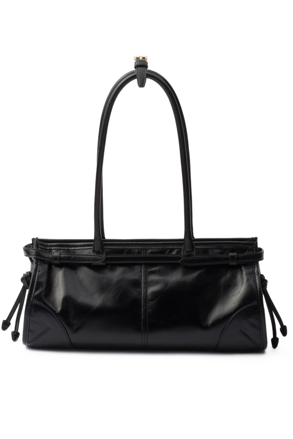 Чёткая прямоугольная форма подчёркивает архитектурный силуэт модели, а две закруглённые верхние ручки обеспечивают комфорт при ношении в руке. Съёмный регулируемый плечевой ремень расширяет стилистические возможности, позволяя носить сумку на плече или через плечо.
