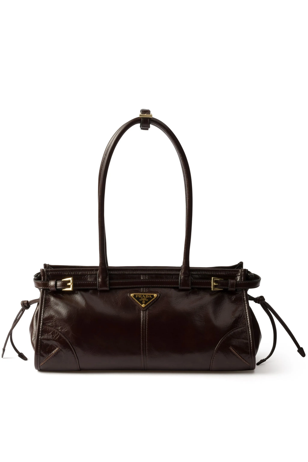 Изысканная модель Bonnie Medium от Prada — гармоничное сочетание лаконичного дизайна и продуманной функциональности. Сумка выполнена из гладкой телячьей кожи глубокого коричневого цвета, который придаёт образу свежесть и современную выразительность.