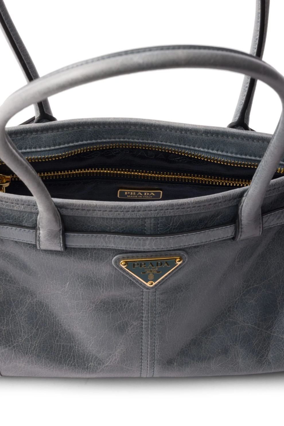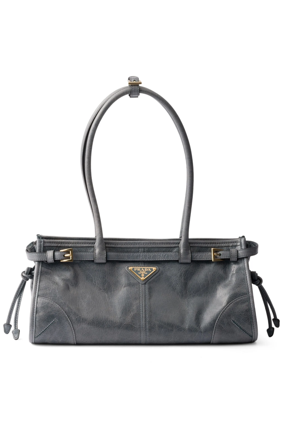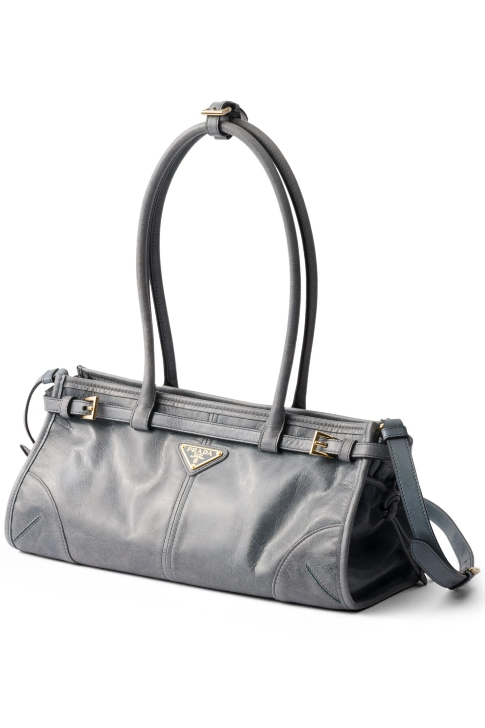 Изысканная модель Bonnie Medium от Prada — гармоничное сочетание лаконичного дизайна и продуманной функциональности. Сумка выполнена из гладкой телячьей кожи насыщенного серого оттенка, который придаёт образу свежесть и современную выразительность.