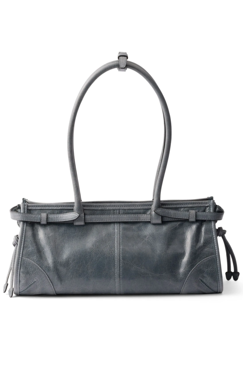 Чёткая прямоугольная форма подчёркивает архитектурный силуэт модели, а две закруглённые верхние ручки обеспечивают комфорт при ношении в руке. Съёмный регулируемый плечевой ремень расширяет стилистические возможности, позволяя носить сумку на плече или через плечо.