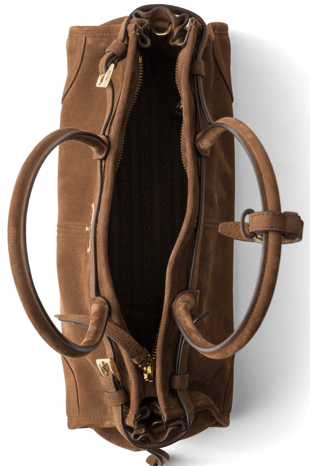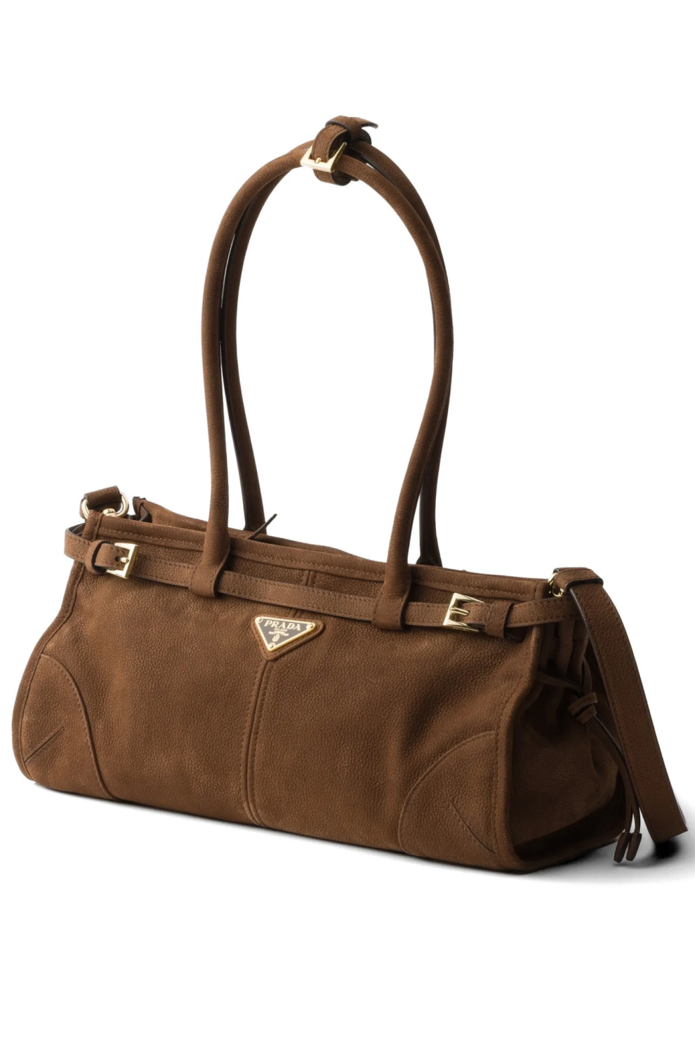 Элегантная и функциональная модель Bonnie от Prada, которая из сезона в сезон возвращается в обновлённых интерпретациях, оставаясь современной иконой бренда. В данной версии сумка выполнена из мягкой нубуковой кожи, придающей силуэту глубину цвета и благородную матовую текстуру.